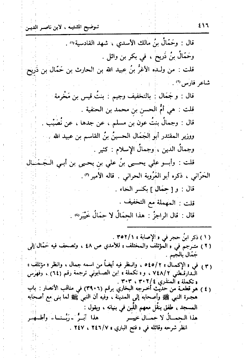 ووزير المقتدر أَبُو الْجمال الْحُسَيْن بن الْقَاسِم بن عبيد الله. وجمال الدّين، وجمال الْإِسْلَام: كثير.
