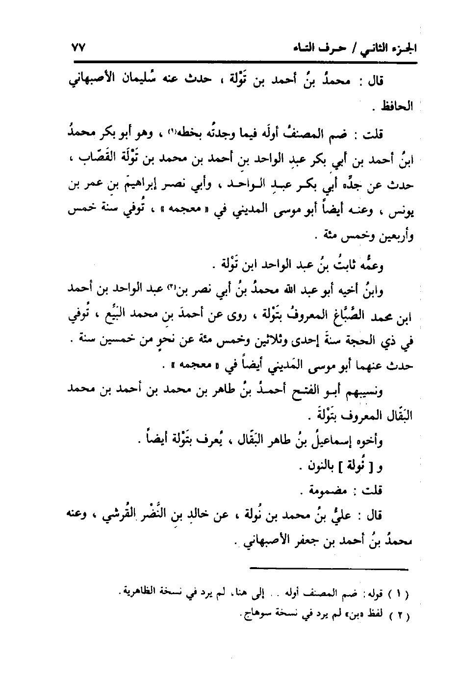 قلت: ضم المُصَنّف أَوله فِيمَا وجدته بِخَطِّهِ، وَهُوَ أَبُو بكر مُحَمَّد ابْن أَحْمد بن أبي بكر عبد الْوَاحِد بن أَحْمد بن مُحَمَّد بن تولة القصاب، حدث عَن جده أبي بكر عبد الْوَاحِد، وابي نصر إِبْرَاهِيم بن عمر بن يُونُس، وَعنهُ أَيْضا أَبُو مُوسَى الْمَدِينِيّ فِي " مُعْجَمه "، توفّي سنة خمس واربعين وَخمْس مئة.