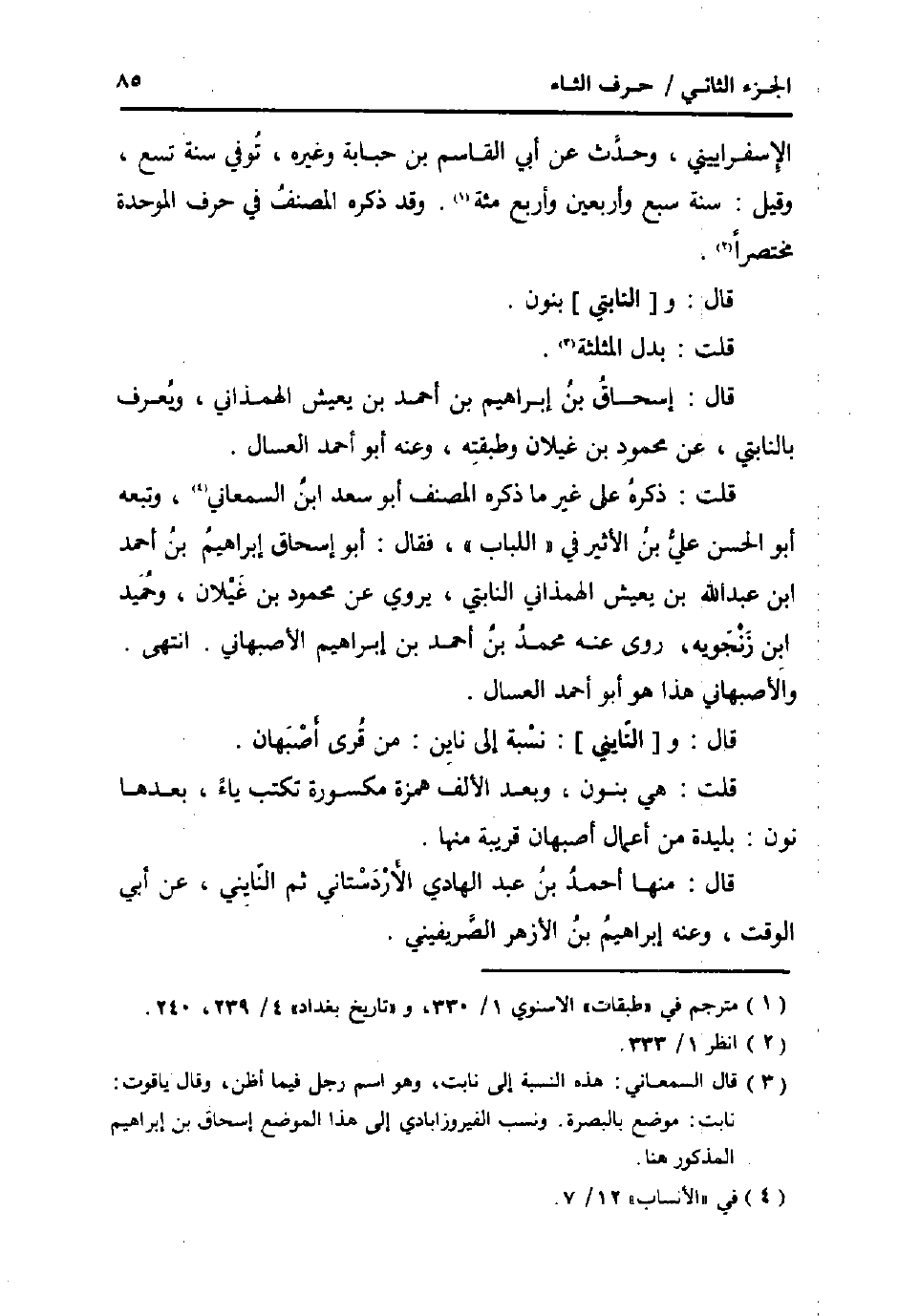 قلت ذكره على غير مَا ذكره المُصَنّف أَبُو سعد ابْن السَّمْعَانِيّ، وَتَبعهُ أَبُو الْحسن عَليّ بن الاثير فِي " اللّبَاب "، فَقَالَ: أَبُو إِسْحَاق إِبْرَاهِيم بن أَحْمد ابْن عبد الله بن يعِيش الهمذاني النابتي، يروي عَن مَحْمُود بن غيلَان، وَحميد ابْن زَنْجوَيْه، روى عَنهُ مُحَمَّد بن أَحْمد بن إِبْرَاهِيم الاصبهاني. انْتهى.
