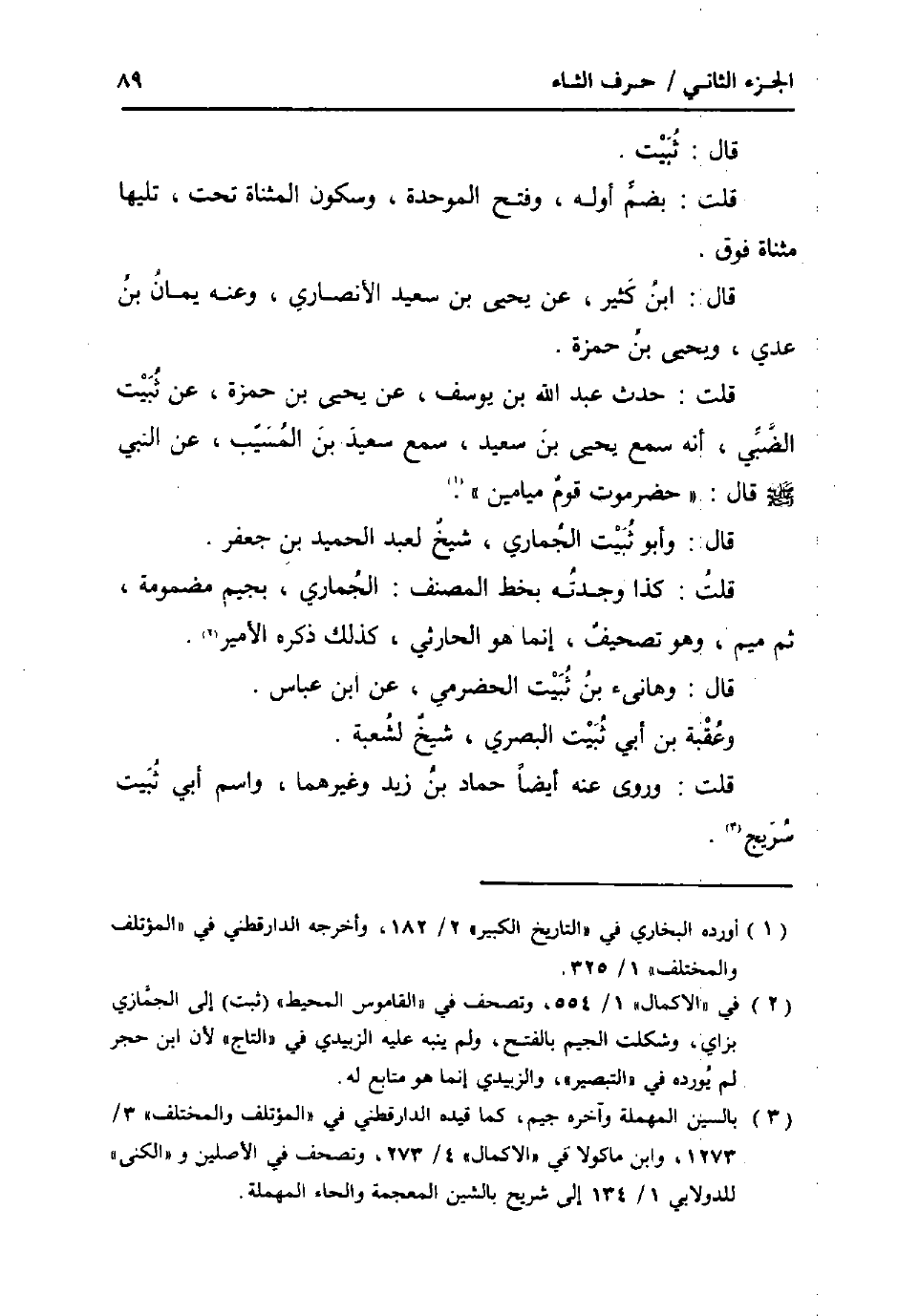 قلت: كَذَا وجدته بِخَط المُصَنّف: الجماري، بجيم مَضْمُومَة، ثمَّ مِيم، وَهُوَ تَصْحِيف، إِنَّمَا هُوَ الْحَارِثِيّ، كَذَلِك ذكره الْأَمِير.