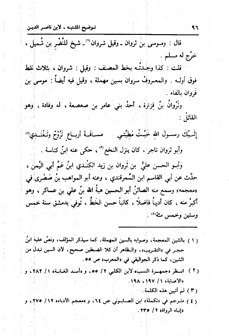 قلت: كَذَا وجدته بِخَط المُصَنّف: وَقيل: شرْوَان، بِثَلَاث نقط فَوق أَوله. وَالْمَعْرُوف سروان بسين مُهْملَة، وَقيل فِيهِ أَيْضا: مُوسَى بن فروان بِالْفَاءِ.