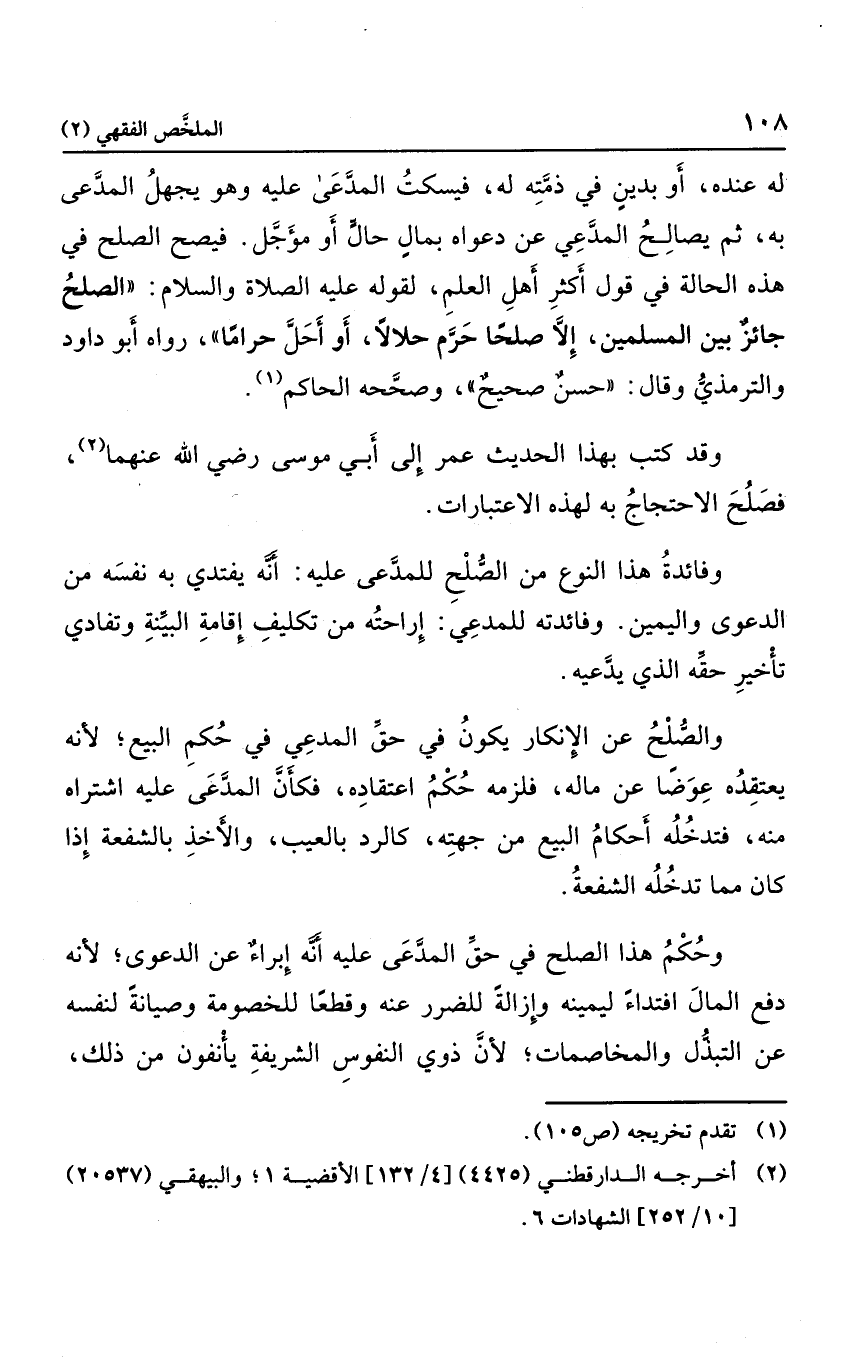 له عنده، أو بدين في ذمته له، فيسكت المدعى عليه وهو يجهل المدعى به، ثم يصالح المدعى عن دعواه بمال حال أو مؤجل، فيصح في هذه الحالة في قول أكثر أهل العلم؛ لقوله صلى الله عليه وسلم: "الصلح جائز بين المسلمين؛ إلا صلحا حرم حلالاً، أو أحل حراما"، رواه أبو داود والترمذي وقال: "حسن صحيح"، وصححه الحاكم.