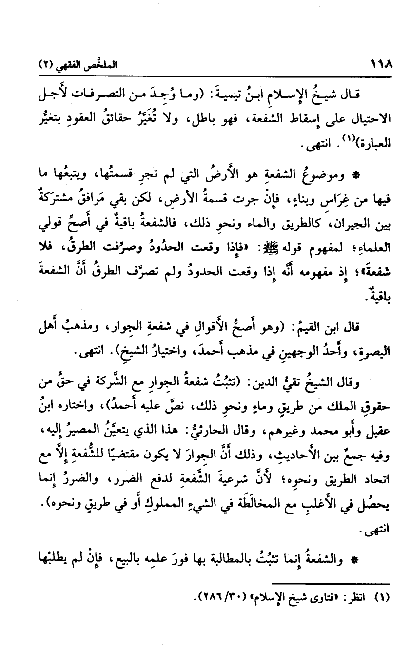 قال ابن القيم: "وهو أصح الأقوال في شفعة الجوار، ومذهب أهل البصرة، وأحد الوجهين في مذهب أحمد، واختيار الشيخ" انتهى.