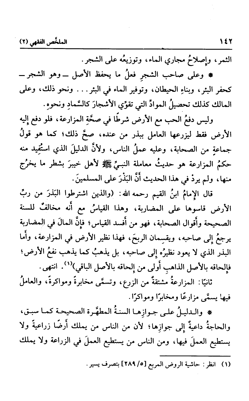 قال الإمام ابن القيم رحمه الله: "والذين اشترطوا البذر من رب الأرض قاسوها على المضاربة، وهذا القياس مع أنه مخالف للسنة الصحيحة وأقوال الصحابة؛ فهو من أفسد القياس؛ فإن المال في المضاربة يرجع إلى صاحبه، ويقسمان الربح؛ فهذا نظير الأرض في المزارعة، وأما البذر الذي لا يعود نظيره إلى صاحبه، بل يذهب كما يذهب نفع الأرض؛ فإلحاقه بالأصل الذاهب أولى من إلحاقه بالأصل الباقي" انتهى.