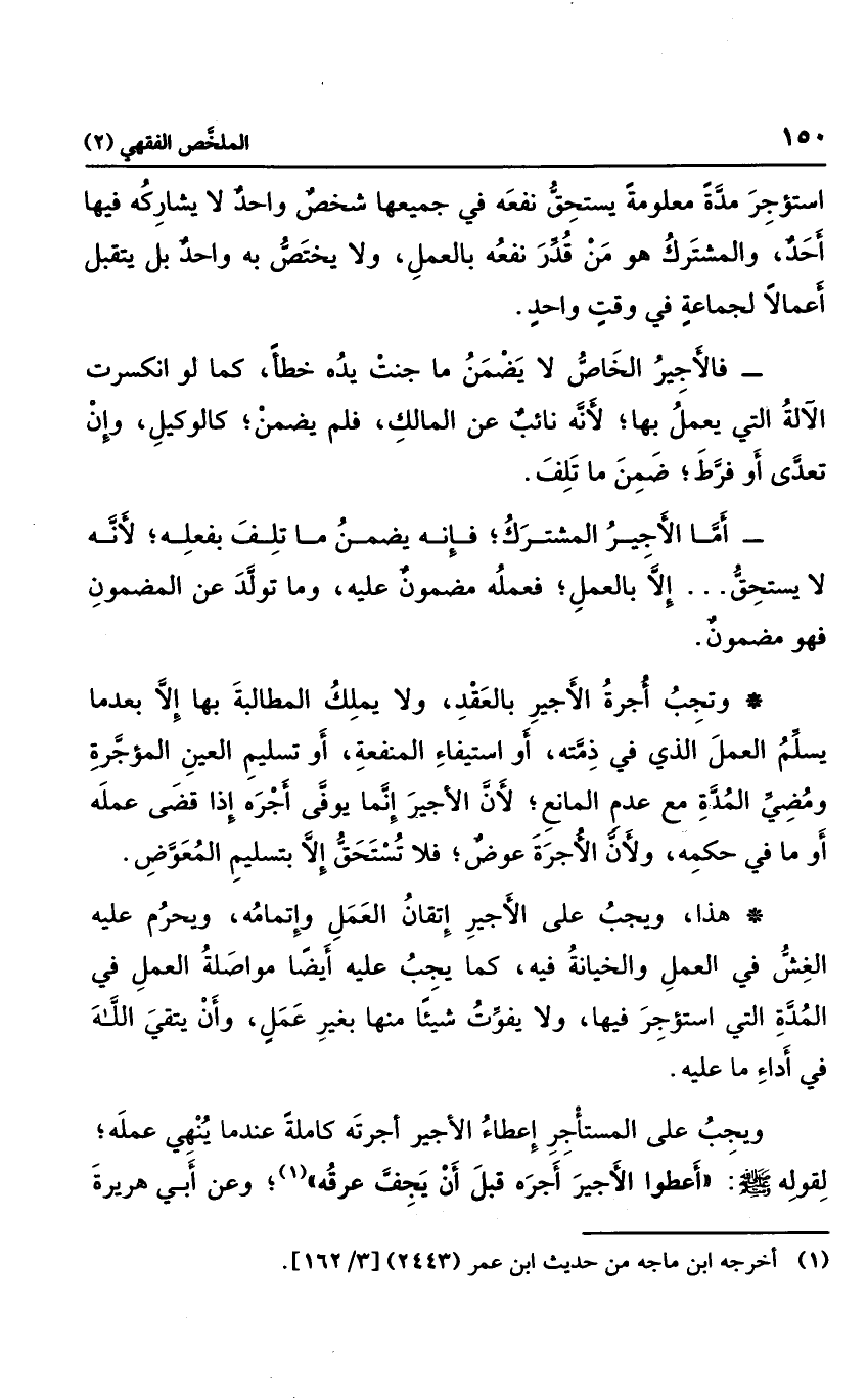 استؤجر مدة معلومة يستحق نفعه في جمعها لا يشاركه فيها أحد. والمشترك هو: من قد نفعه بالعمل ولا يختص به واحد بل يتقبل أعمالاً لجماعة في وقت واحد.