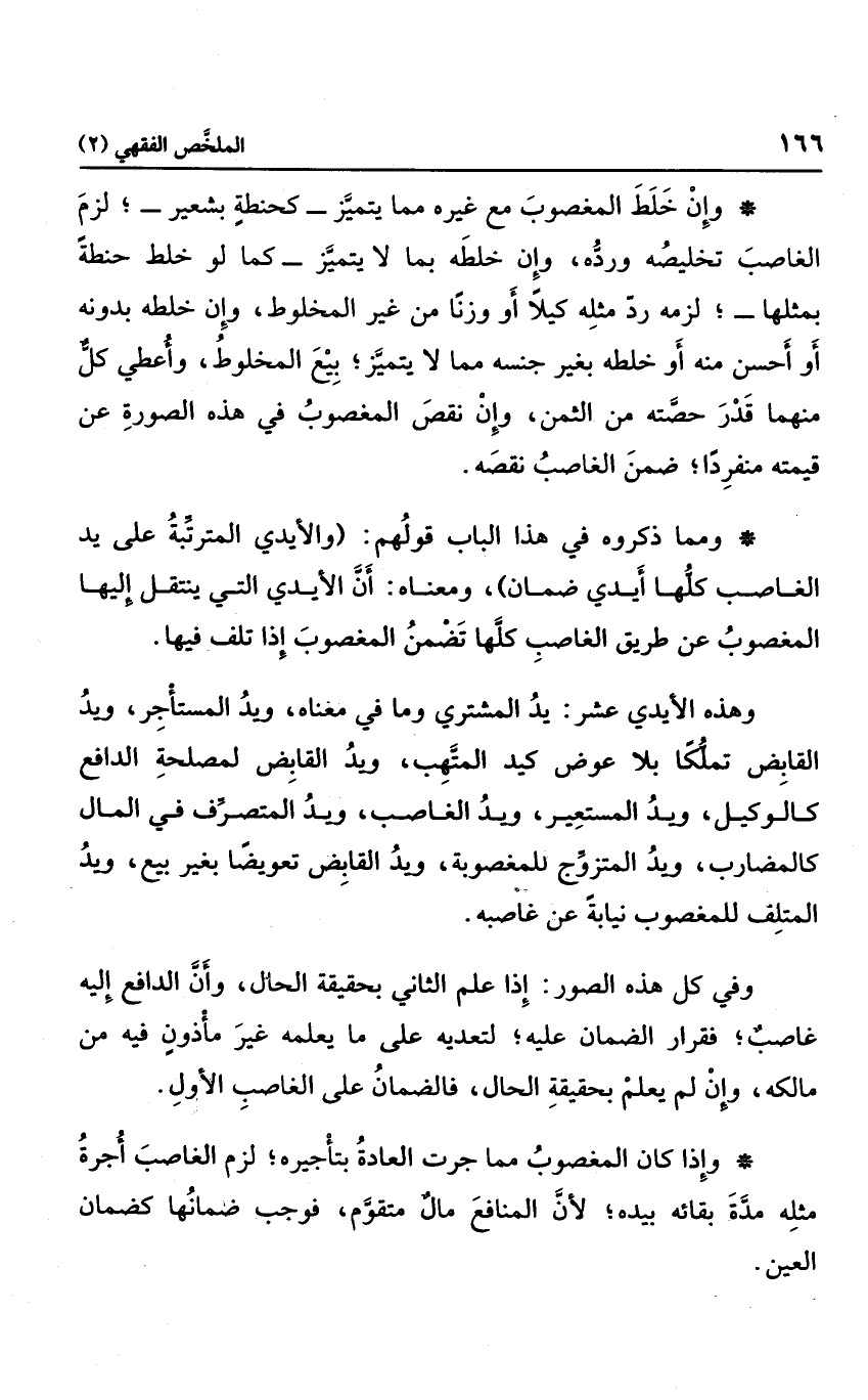 ومما ذكروه في هذا الباب قولهم: "والأيدي المترتبة على يد الغاصب كلها أيدي ضمان"، ومعناه: أن الأيدي التي ينتقل إليها المغصوب عن طريق الغاصب كلها تضمن المغصوب إذا تلف فيها، وهذه الأيدي عشر: