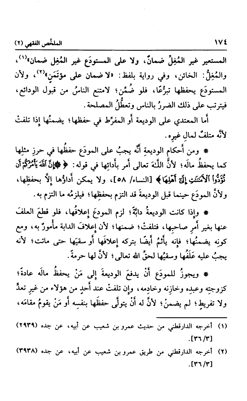 وإذا كانت الوديعة دابة؛ لزم المودَع إعلافها، فلو قطع العلف عنها بغير أمر صاحبها، فتلفت؛ ضمنها؛ لأن إعلاف الدابة مأمور به، ومع كونه يضمنها؛ فإنه يأثم أيضا بتركه إعلافها أو سقيها حتى ماتت؛ لأنه يجب عليه علفها وسقيها لحق الله تعالى، لأن لها حرمة.