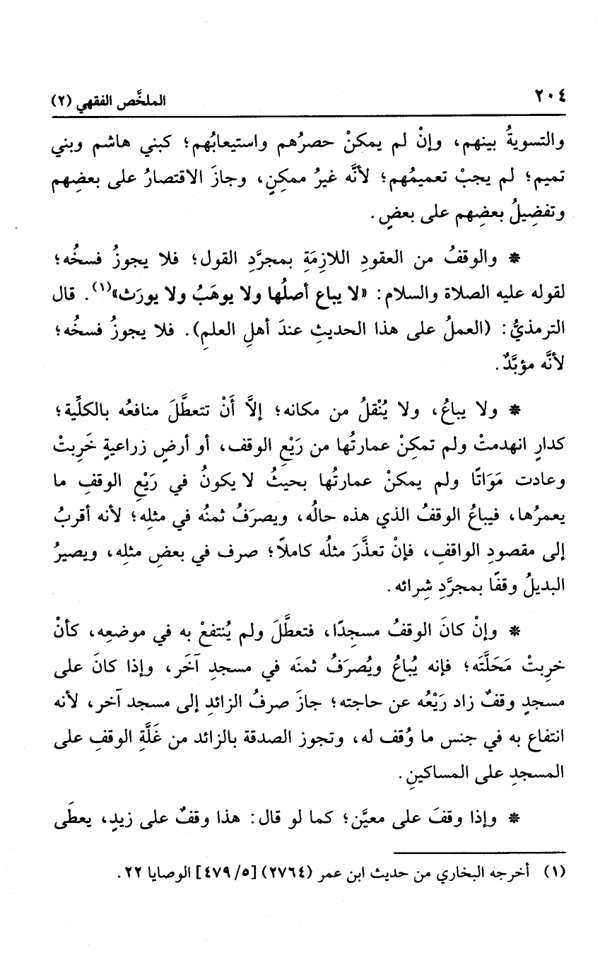 والوقف من العقود اللازمة بمجرد القول؛ فلا يجوز فسخه؛ لقوله عليه الصلاة والسلام: "لا يباع أصلها ولا يوهب ولا يورث". قال الترمذي: "العمل على هذا الحديث عند أهل العلم".