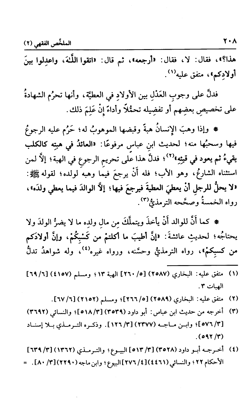 هذا؟ "، فقال: لا. فقال: "أرجعه". ثم قال: "اتقوا الله، واعدلوا بين أولادكم"، متفق عليه.