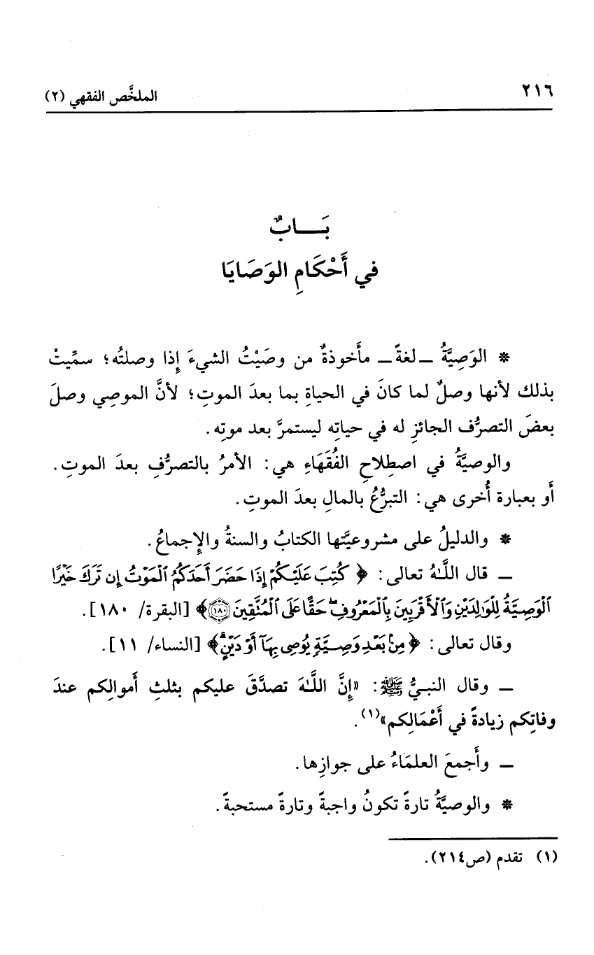 قال الله تعالى: {كُتِبَ عَلَيْكُمْ إِذَا حَضَرَ أَحَدَكُمُ الْمَوْتُ إِنْ تَرَكَ خَيْراً الْوَصِيَّةُ لِلْوَالِدَيْنِ وَالأَقْرَبِينَ بِالْمَعْرُوفِ حَقّاً عَلَى الْمُتَّقِينَ} .