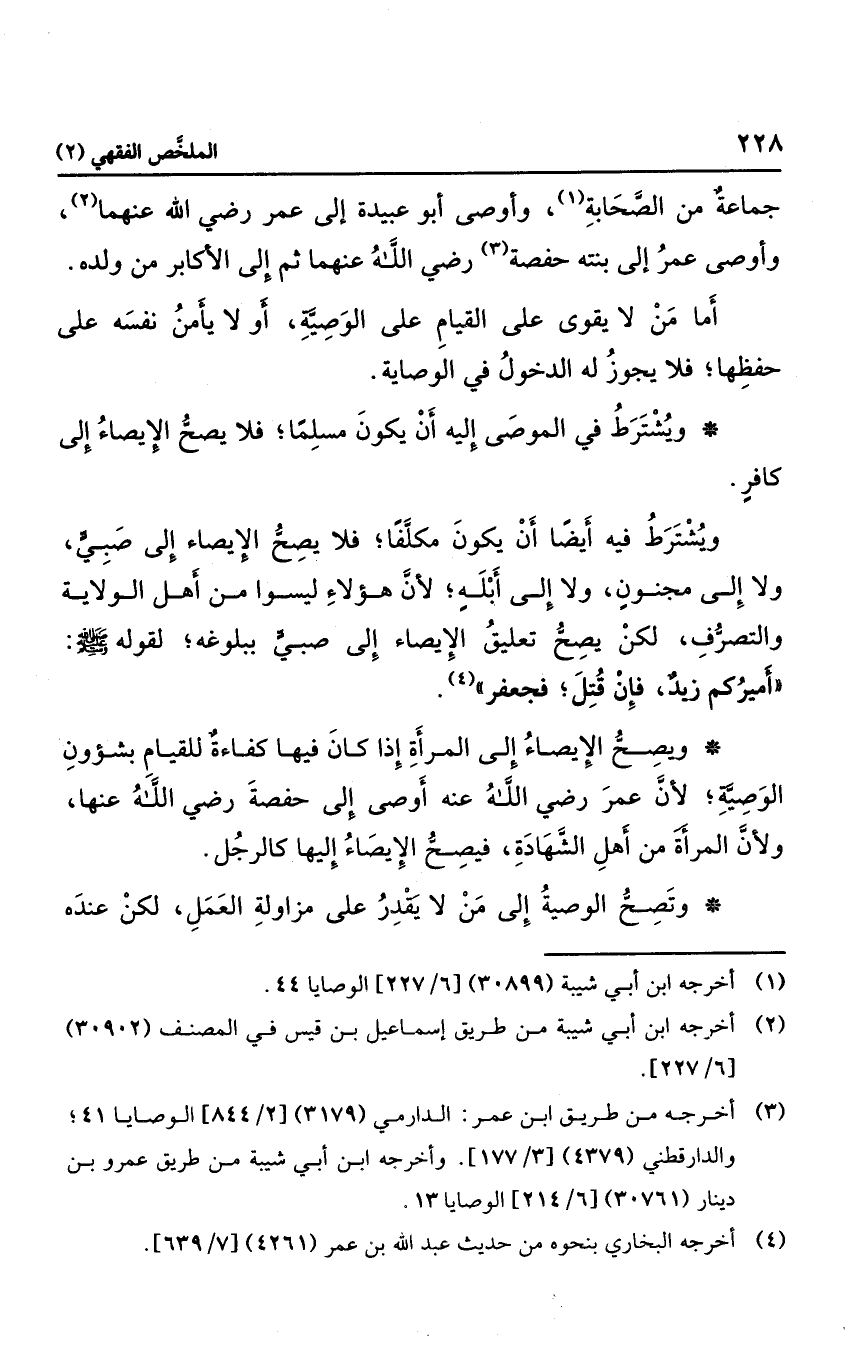 جماعة من الصحابة، وأوصى أبو عبيدة إلى عمر رضي الله عنهما، وأوصى عمر إلى بنته حفصة رضي الله عنها ثم إلى الأكابر من ولده.