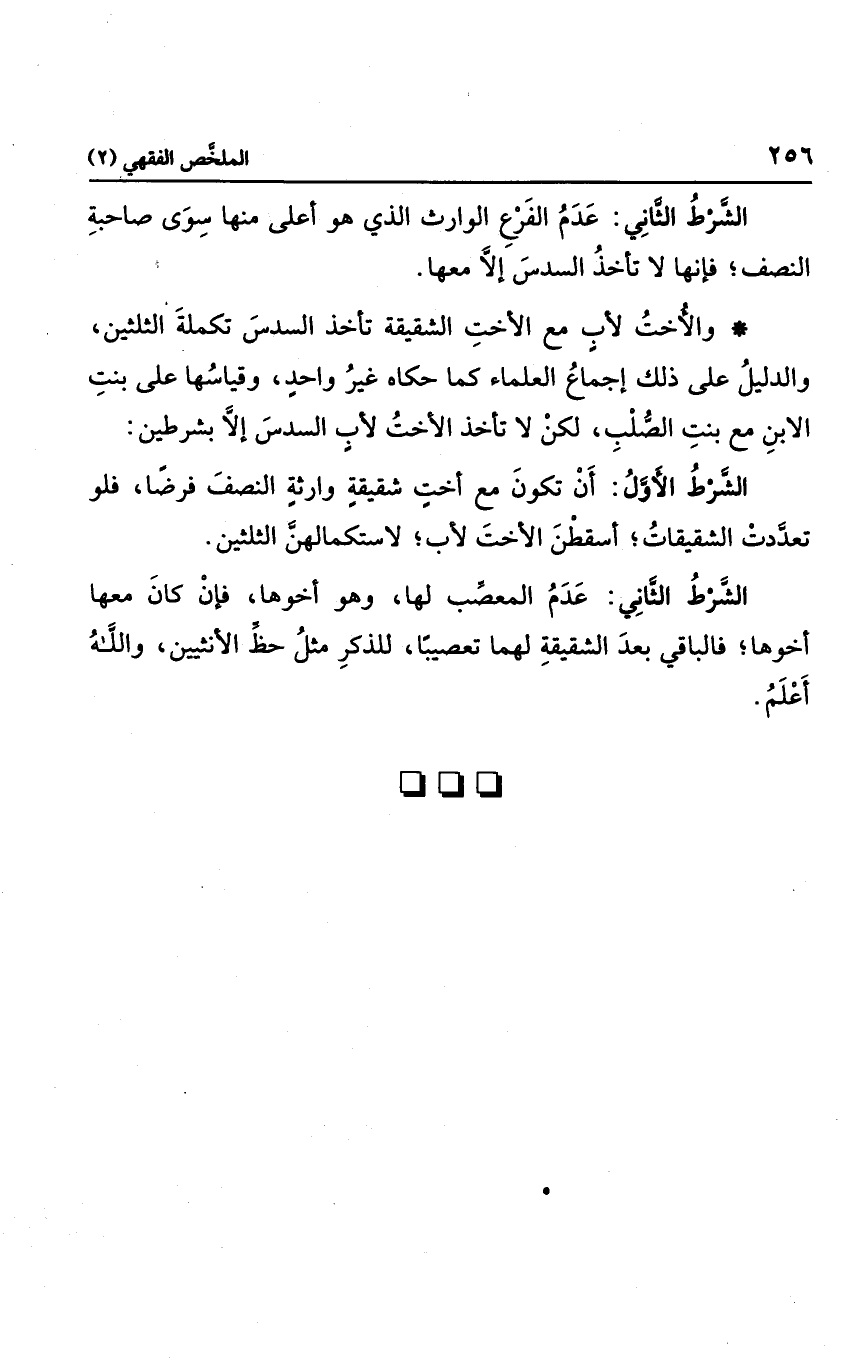 الشرط الثاني: عدم المعصب لها، وهو أخوها فإن كان معها أخوها؛ فالباقي بعد الشقيقة لهما تعصيبا للذكر مثل حظ الأنثيين، والله أعلم.