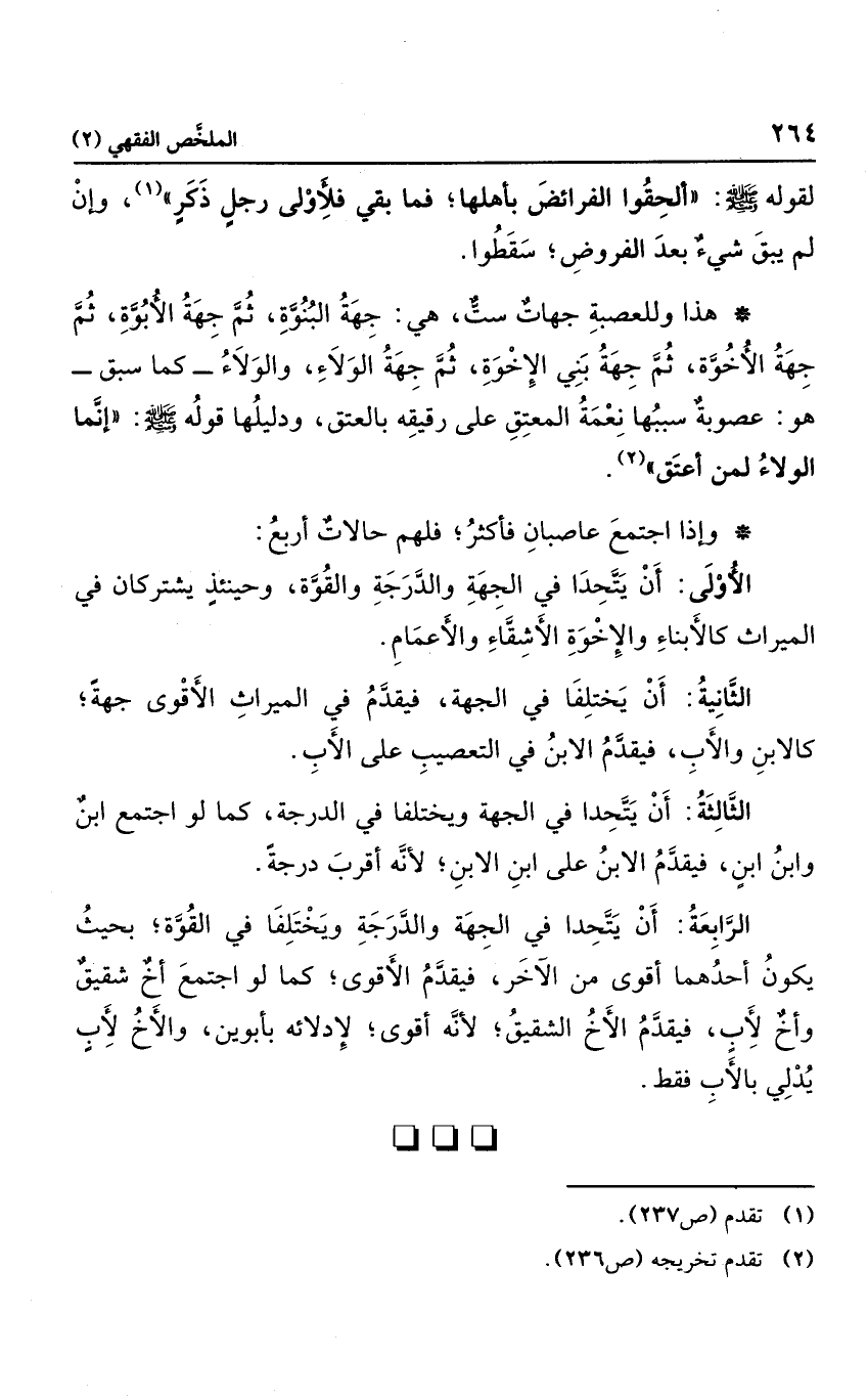 الرابعة: أن يتحدا في الجهة والدرجة ويختلفا في القوة؛ بحيث يكون أحدهما أقوى من الآخر، فيقدم الأقوى؛ كما لو اجتمع أخ شقيق وأخ لأب، فيقدم الأخ الشقيق؛ لأنه أقوى لإدلائه بأبوين، والأخ لأب يدلي بالأب فقط.