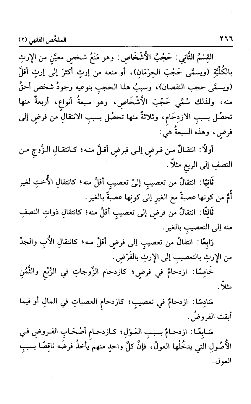 خامسا: ازدحام في فرض؛ كازدحام الزوجات في الربع والثمن مثلاً.
