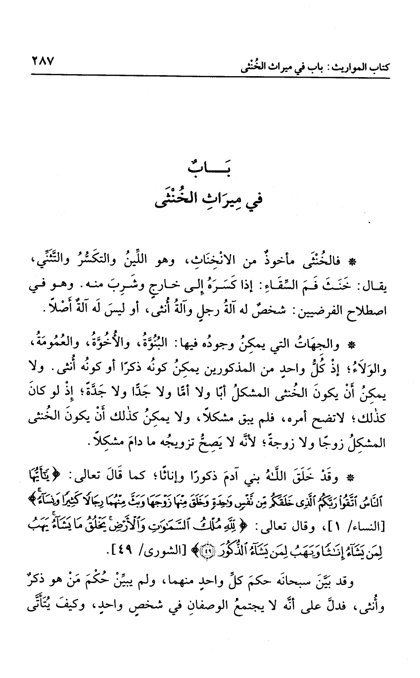 وقد بين سبحانه حكم كل واحد منهما، ولم يبين حكم من هو ذكر وأنثى، فدل على أنه لا يجتمع الوصفان في شخص واحد، وكيف يتأتى