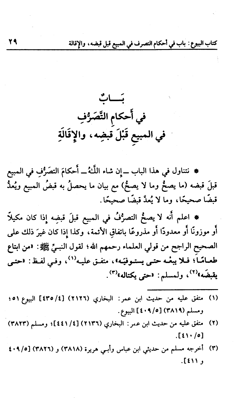 نتناول في هذا الباب إن شاء الله أحكام التصرف في المبيع قبل قبضه ما يصح وما لا يصح، مع بيان ما يحصل به قبض المبيع ويعد قبضا صحيحا، وما لا يعد قبضا صحيحا.