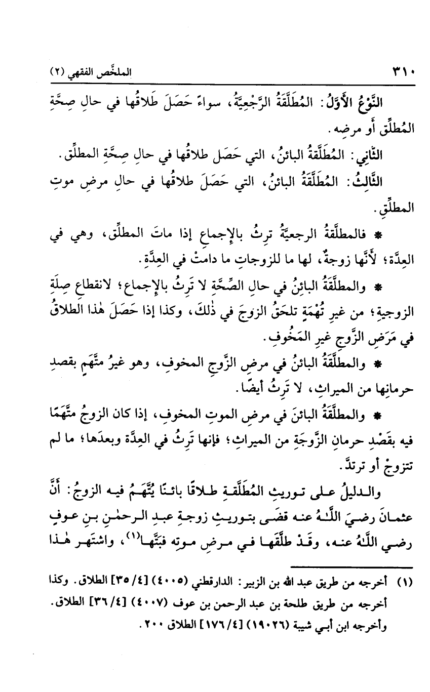 النوع الأول: المطلقة الرجعية، سواء حصل طلاقها في حال صحة المطلق أو مرضه.