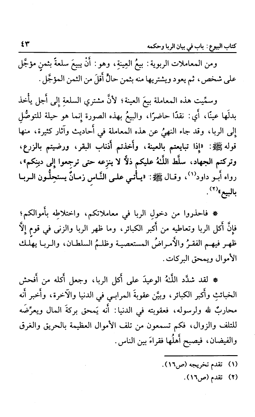 ومن المعاملات الربوية: بيع العينة، وهو أن يبيع سلعة بثمن مؤجل على شخص، ثم يعود ويشتريها منه بثمن حال أقل من الثمن المؤجل، وسميت هذه المعاملة بيع العينة؛ لأن مشتري السلعة إلى أجل يأخذ بدلها عينا؛ أي: نقدًا حاضرًا، والبيع بهذه الصورة إنما هو حيلة للتوصل إلى الربا، وقد جاء النهي عن هذه المعاملة في أحاديث وآثار كثيرة؛ منها قوله صلى الله عليه وسلم: "إذا تبايعتم بالعينة، وأخذتم أذناب البقر، ورضيتم بالزرع، وتركتم الجهاد؛ سلط الله عليكم ذلاً لا ينزعه حتى ترجعوا إلى دينكم"، رواه أبو داود، وقال صلى الله عليه وسلم: "يأتي على الناس زمان يستحلون الربا بالبيع".