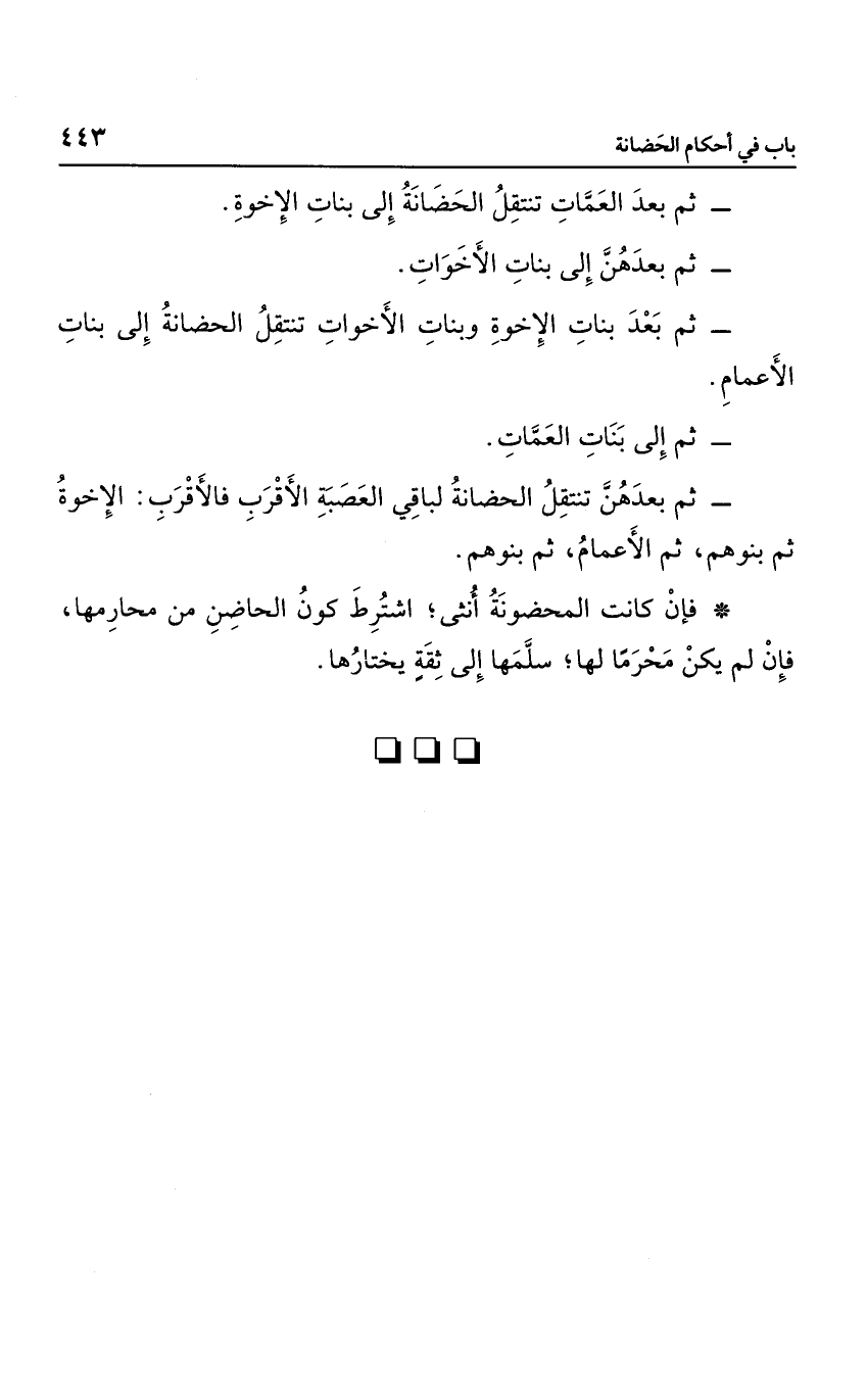 ثم بعد بنات الإخوة وبنات الأخوات تنتقل الحضانة إلى بنات الأعمام.