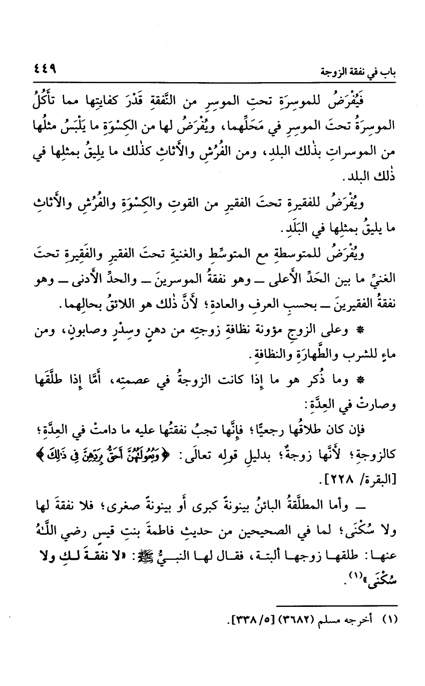 وما ذكر هو ما إذا كانت الزوجة في عصمته، أما إذا طلقها وصارت في العدة: فإن كان طلاقها رجعي ا؛ فإنها تجب نفقتها عليه ما دامت في العدة؛ كالزوجة لأنها زوجة؛ بدليل قوله تعالى: {وَبُعُولَتُهُنَّ أَحَقُّ بِرَدِّهِنَّ فِي ذَلِك} .