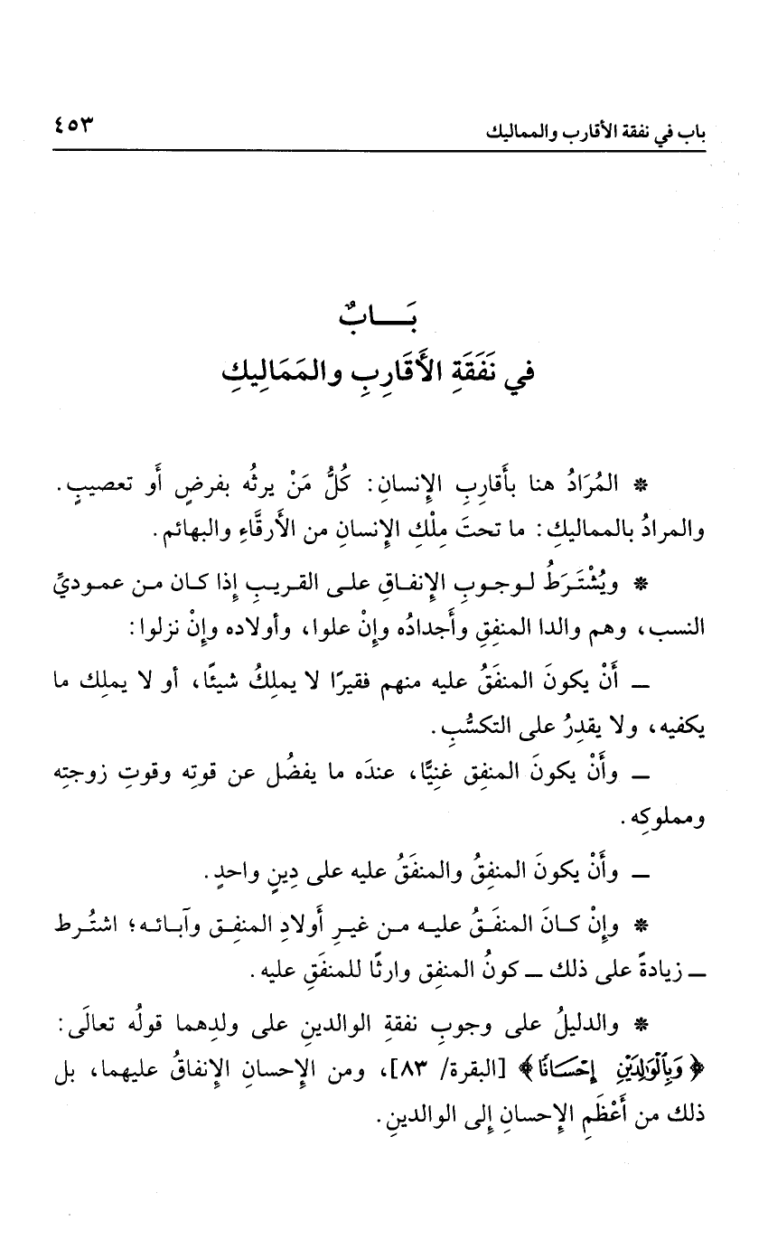 باب في نفقة الأقارب والمماليك