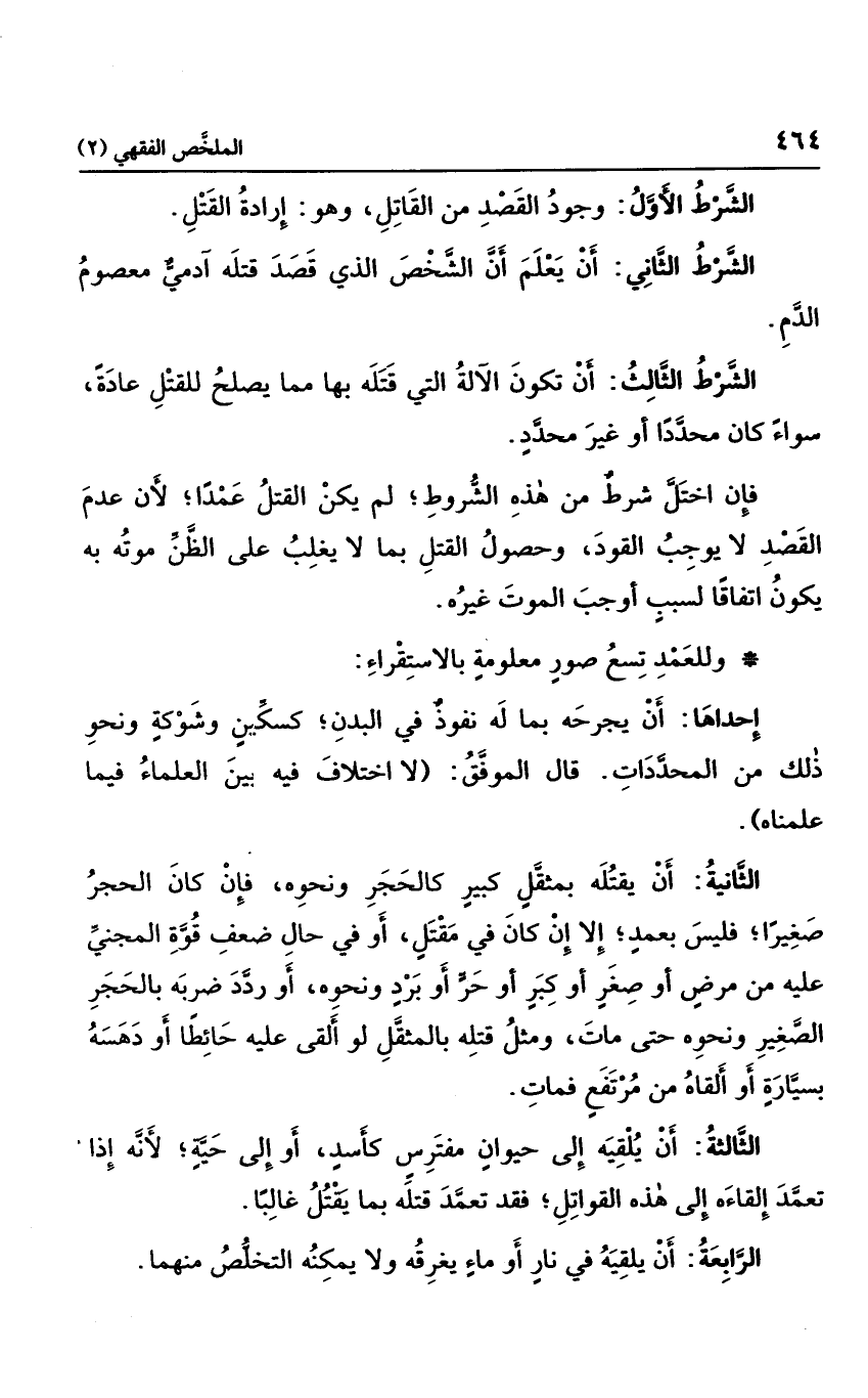 الشرط الأول: وجود القصد من القاتل، وهي إرادة القتل.