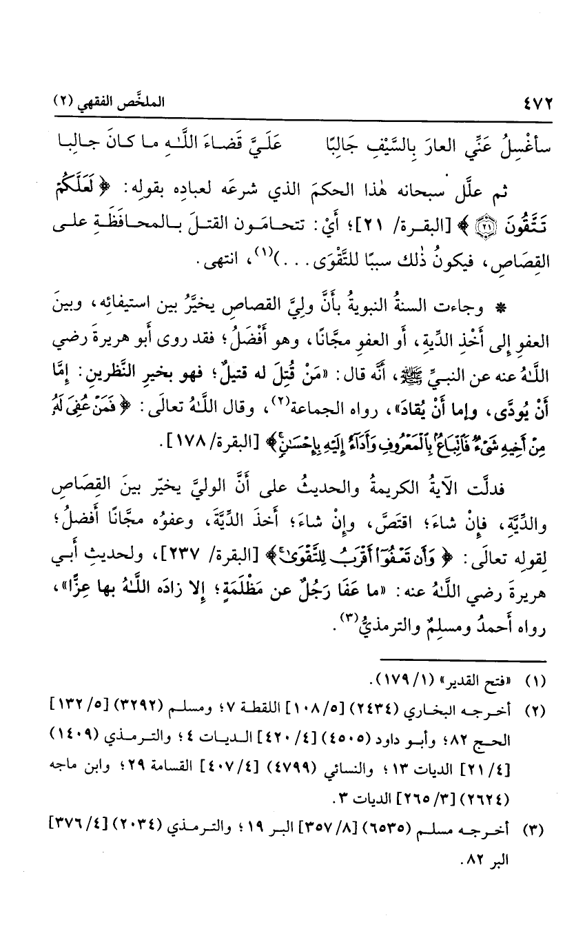 وقال الله تعالى: {فَمَنْ عُفِيَ لَهُ مِنْ أَخِيهِ شَيْءٌ فَاتِّبَاعٌ بِالْمَعْرُوفِ وَأَدَاءٌ إِلَيْهِ بِإِحْسَانٍ} .