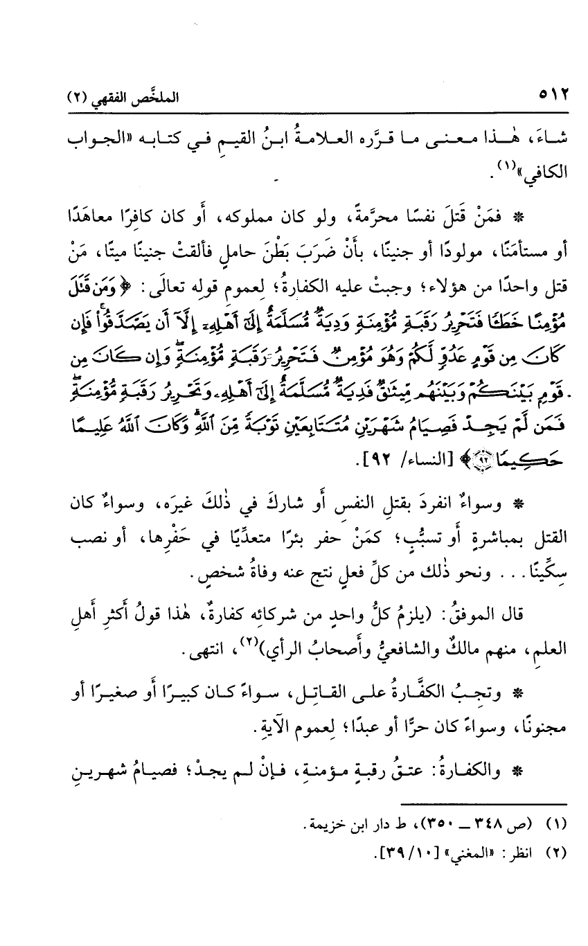 فمن قتل نفسا محرمة، ولو كان مملوكه، أو كان كافرًا معاهدًا أو مستأمنا، مولودًا أو جنينا بأن ضرب بطن حامل فألقت جنينا ميتا، ومن قتل واحدًا من هؤلاء؛ وجبت عليه الكفارة؛ لعموم قوله تعالى: {وَمَنْ قَتَلَ مُؤْمِناً خَطَأً فَتَحْرِيرُ رَقَبَةٍ مُؤْمِنَةٍ وَدِيَةٌ مُسَلَّمَةٌ إِلَى أَهْلِهِ إِلَّا أَنْ يَصَّدَّقُوا فَإِنْ كَانَ مِنْ قَوْمٍ عَدُوٍّ لَكُمْ وَهُوَ مُؤْمِنٌ فَتَحْرِيرُ رَقَبَةٍ مُؤْمِنَةٍ وَإِنْ كَانَ مِنْ قَوْمٍ بَيْنَكُمْ وَبَيْنَهُمْ مِيثَاقٌ فَدِيَةٌ مُسَلَّمَةٌ إِلَى أَهْلِهِ وَتَحْرِيرُ رَقَبَةٍ مُؤْمِنَةٍ فَمَنْ لَمْ يَجِدْ فَصِيَامُ شَهْرَيْنِ مُتَتَابِعَيْنِ تَوْبَةً مِنَ اللَّهِ وَكَانَ اللَّهُ عَلِيماً حَكِيماً} .