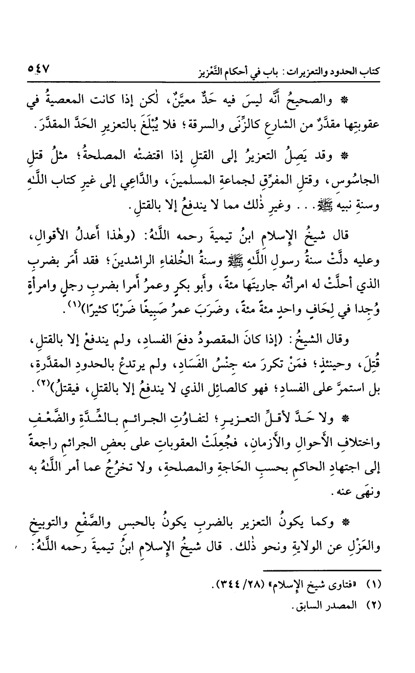 وقال الشيخ: "إذا كان المقصود دفع الفساد، ولم يندفع إلا بالقتل؛ قتل، وحينئذ؛ فمن تكرر منه جنس الفساد، ولم يرتدع بالحدود المقدرة، بل استمر على الفساد؛ فهو كالصائل الذي لا يندفع إلا بالقتل، فيقتل".