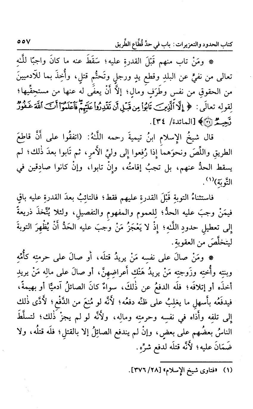 قال شيخ الإسلام ابن تيمية رحمه الله: "اتفقوا على أن قاطع الطريق واللص ونحوهما إذا رفعوا إلى ولي الأمر، ثم تابوا بعد ذلك؛ لم يسقط الحد عنهم، بل تجب إقامته، وإن تابوا، وإن كانوا صادقين في التوبة".