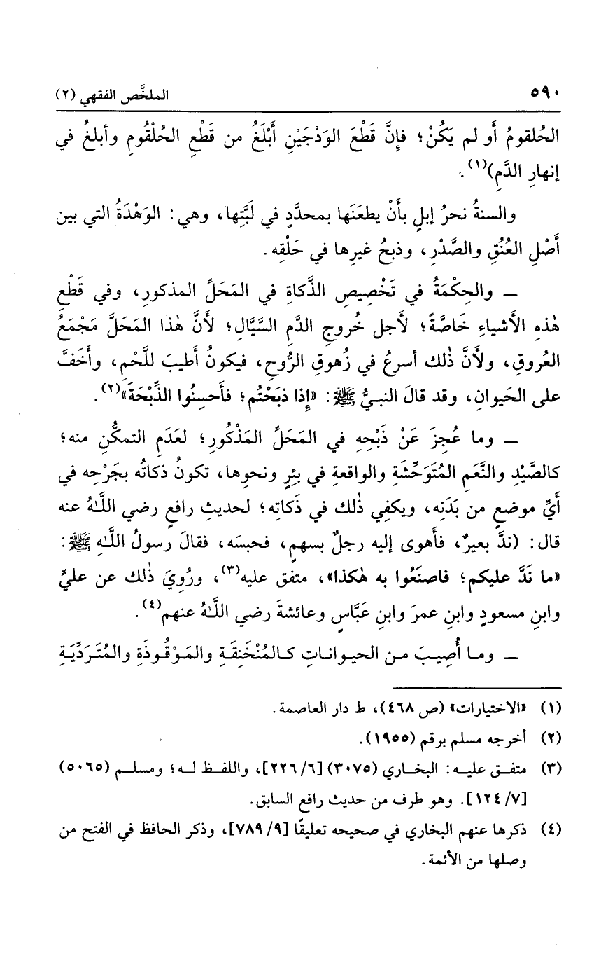 الحلقوم أو لم يكن؛ فإن قطع الودجين أبلغ من قطع الحلقوم وأبلغ في إنهار الدم".