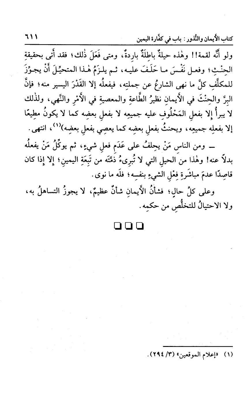 وعلى كل حال؛ فشأن الأيمان شأن عظيم، لا يجوز التساهل به، ولا الاحتيال للتخلص من حكمه.