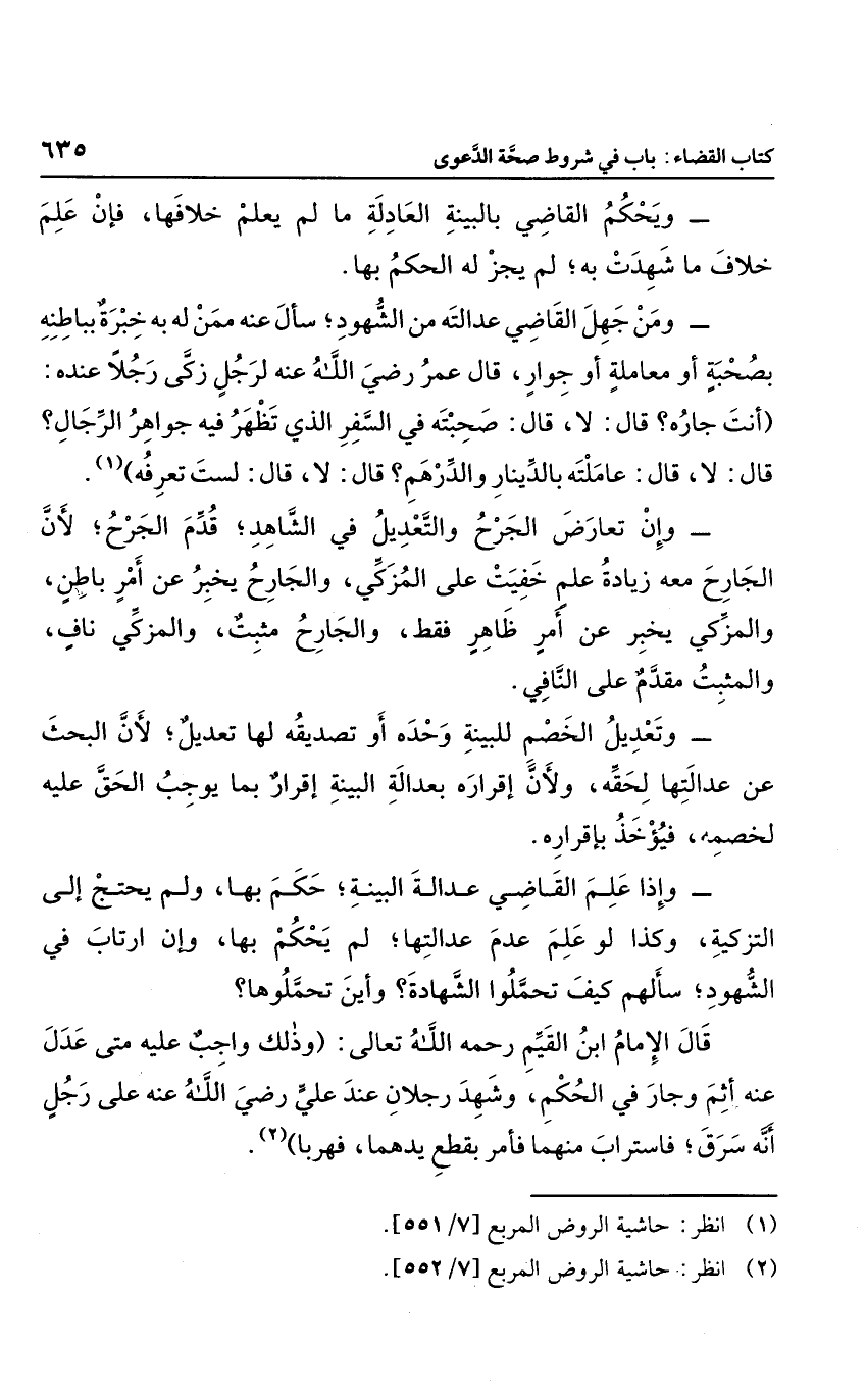 ومن جهل القاضي عدالته من الشهود؛ سأل عنه ممن له به خبرة باطنه بصحبة أو معاملة أو جوار، قال عمر رضي الله عنه لرجل زكى رجلاً عنده: أنت جاره؟، قال: لا، قال: صحبته في السفر الذي تظهر فيه جواهر الرجال؟، قال: لا، قال: عاملته بالدينار والدرهم؟، قال: لا، قال: لست تعرفه.