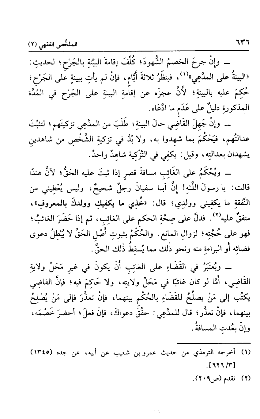 ويحكم على الغائب مسافة قصر إذا ثبت عليه الحق؛ لأن هندًا قالت: يا رسول الله! إن أبا سفيان رجل شحيح، وليس يعطيني من الفقة ما يكفيني وولدي؛ قال: "خذي ما يكفيك وولدك بالمعروف"، متفق عليه.