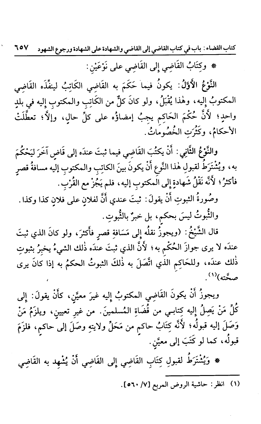 النوع الأول: يكون فيما حكم به القاضي الكاتب لينفذه القاضي المكتوب إليه، وهذا يقبل، ولو كان كل من الكاتب والمكتوب إليه في بلد واحد؛ لأن حكم الحاكم يجب إمضاؤه على كل حال، إلا؛ تعطلت الأحكام، وكثرت الخصومات.