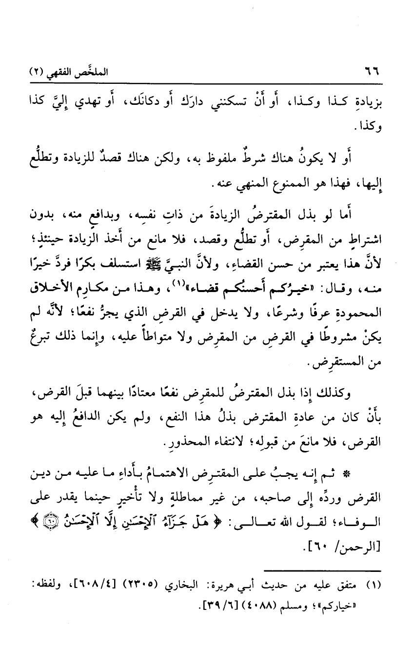 بزيادة كذا وكذا، أو أن تسكنني دارك أو دكانك، أو تهدي إلي كذا وكذا، أو لا يكون هناك شرط ملفوظ به، ولكن هناك قصد للزيادة وتطلع إليها؛ فهذا هو الممنوع المنهي عنه.