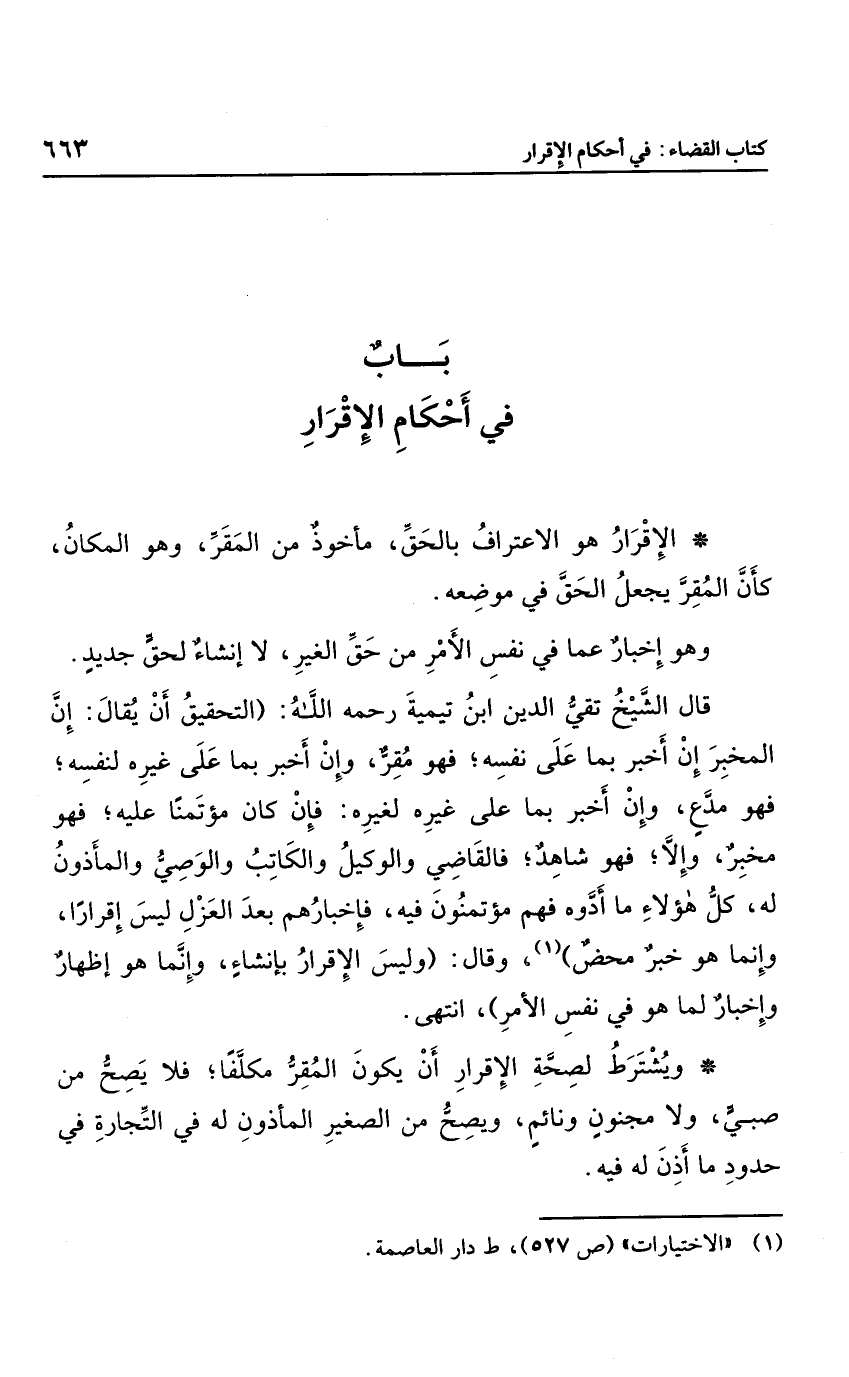 باب في أحكام الإقرار
