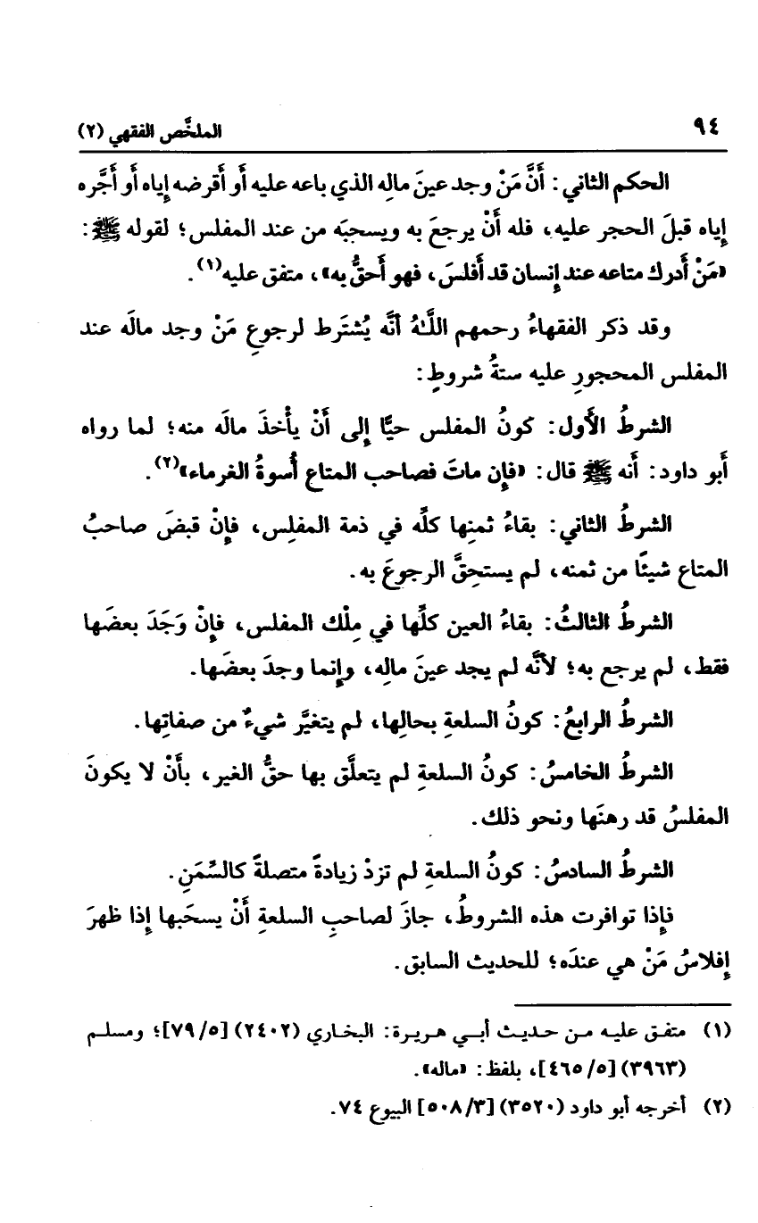 وقد ذكر الفقهاء رحمهم الله أنه يشترط لرجوع من وجد ماله عند المفلس المحجور عليه ستة شروط: