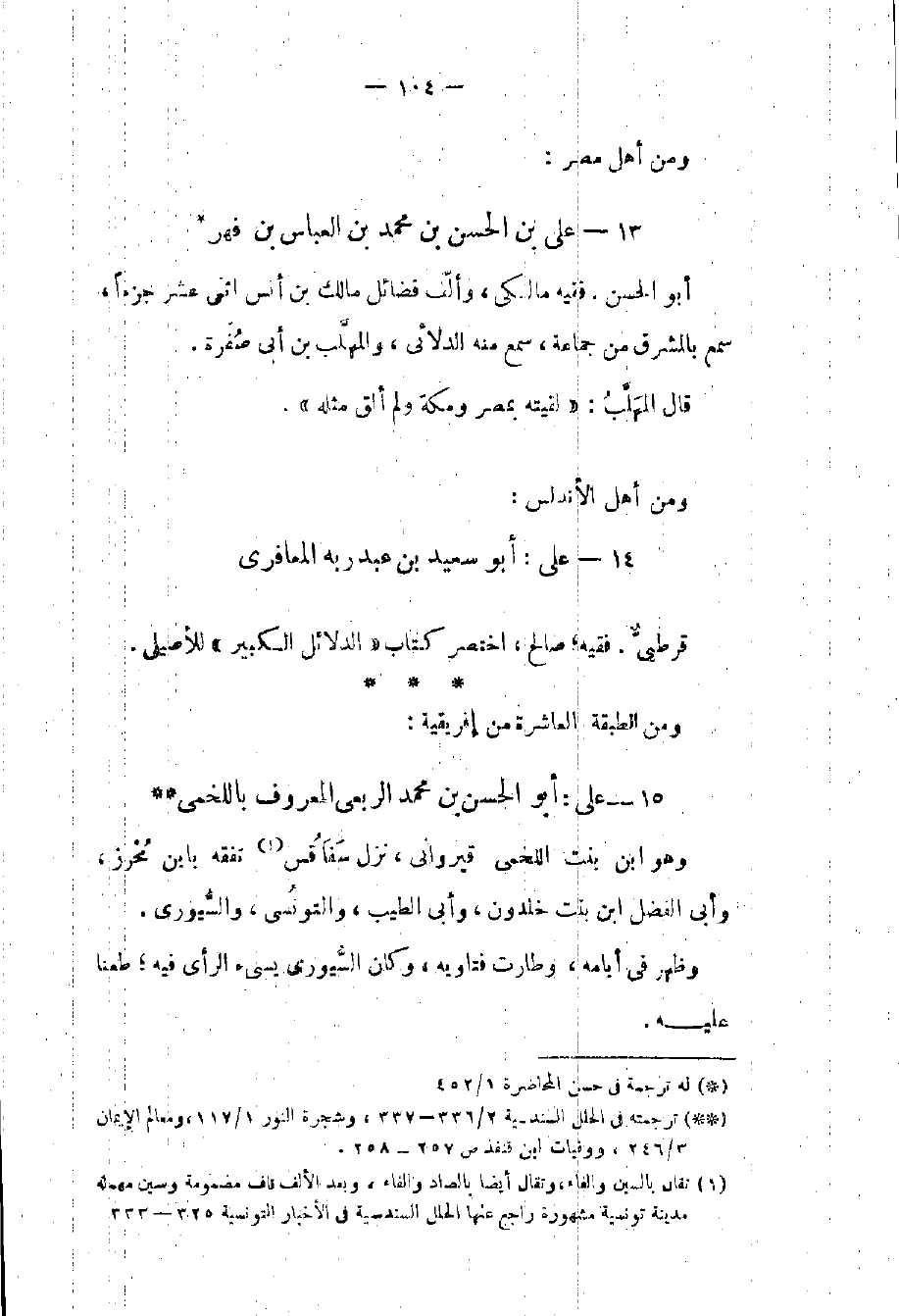 أبو الحسن فقيه مالكي وألف في فضائل مالك بن أنس اثني عشر جزءاً سمع بالمشرق من جماعة سمع منه الدلائي والمهلب بن أبي صفرة. قال المهلب: لقيته بمصر ومكة ولم ألق مثله.