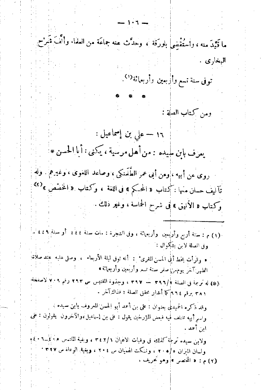 من أهل مرسية يكنى: أبا الحسن روى عن أبيه وعن أبي عمر الطلمنكي وصاعد اللغوي وغيرهم. وله تآليف حسان منها: كتاب المحكم في اللغة وكتاب المخصص وكتاب الأنيق في شرح الحماسة وغير ذلك.