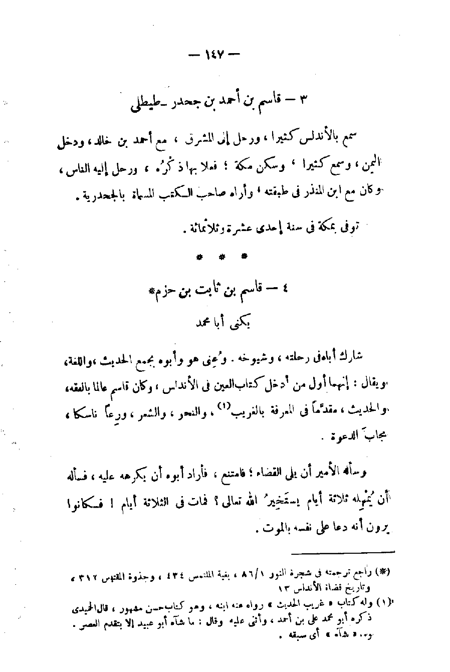 يكنى أبا محمد شارك أباه في رحلته وشيوخه وعني هو وأبوه بجمع الحديث واللغة ويقال: إنهما أول من أدخل كتاب العين في الأندلس وكان قاسم عالماً بالفقه والحديث مقدماً في المعرفة بالغريب والنحو والشعر ورعاً ناسكاً مجاب الدعوة.