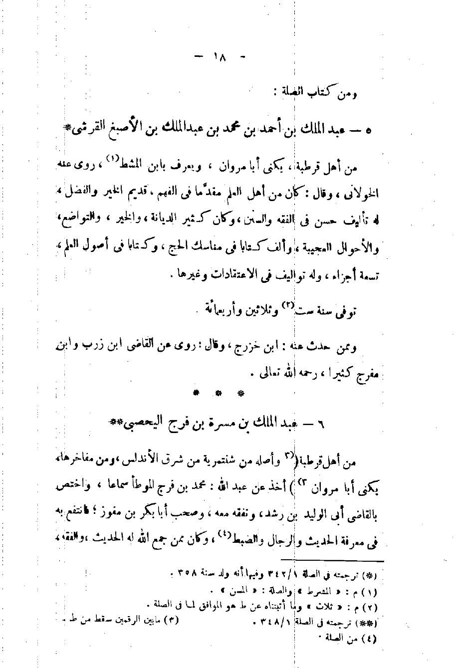من أهل قرطبة يكنى أبا مروان ويعرف بابن المشط روى عنه الخولاني وقال: كان من أهل العلم مقدماً في الفهم قديم الخير والفضل له تأليف حسن في الفقه والسنن وكان كثير الديانة والخير والتواضع والأحوال العجيبة وألف كتاباً في مناسك الحج وكتاباً في أصول العلم تسعة أجزاء وله تآليف في الاعتقادات وغيرها. توفي سنة ست وثلاثين وأربعمائة.