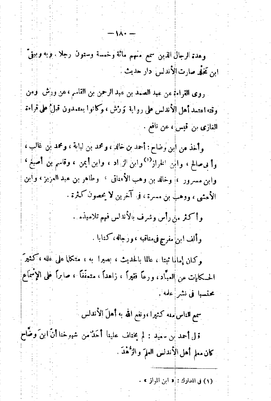 وعدة الرجال الذين سمع منهم مائة وخمسة وستون رجلاً. وبه وببقي بن مخلد صارت الأندلس دار حديث.