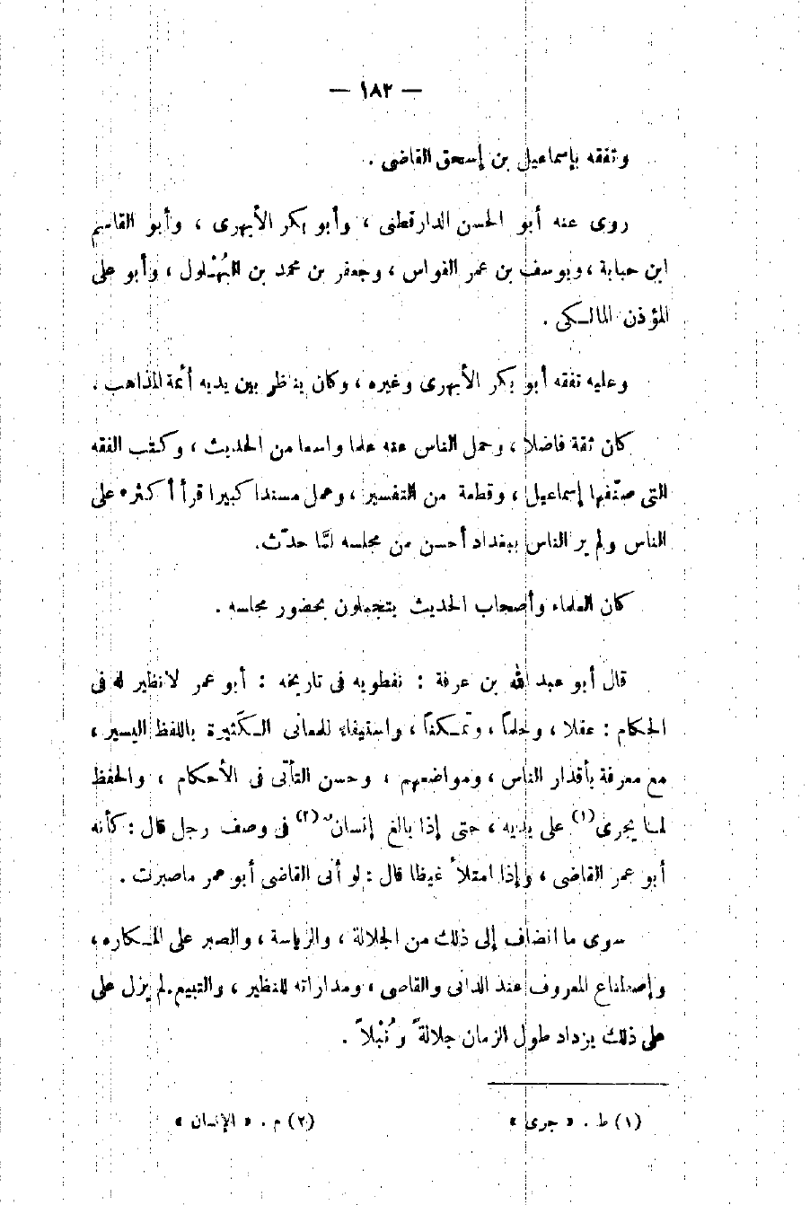 وتفقه بإسماعيل بن إسحاق القاضي. روى عنه أبو الحسن الدارقطني وأبو بكر الأبهري وأبو القاسم بن حبابة ويوسف بن عمر القواس وجعفر بن محمد البهلول وأبو علي المؤذن المالكي وعليه تفقه أبو بكر الأبهري وغيره وكان يناظر بين يديه أئمة المذاهب.