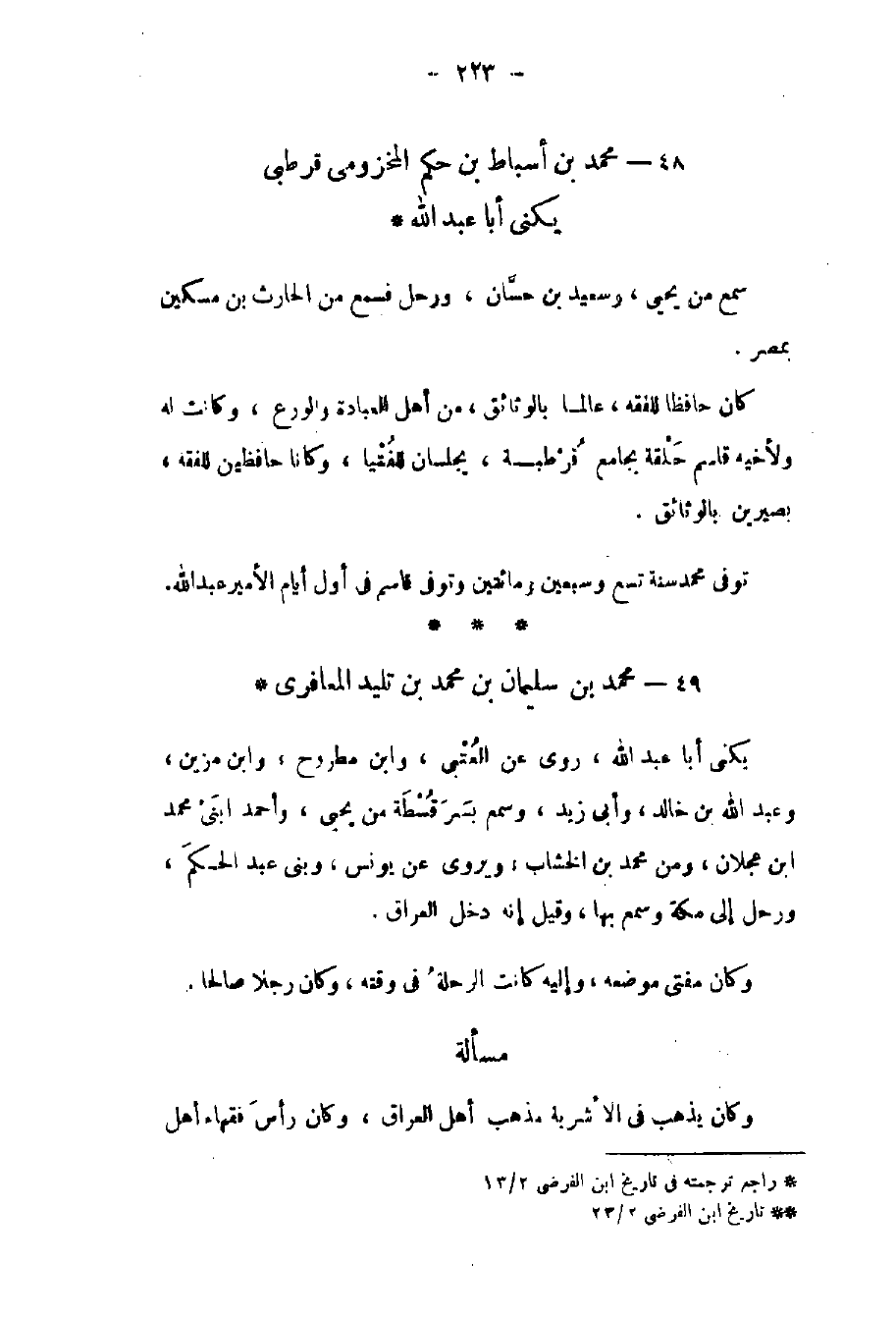 قرطبي يكنى أبا عبد الله سمع من يحيى وسعيد بن حسان ورحل فسمع من الحارث بن مسكين بمصر. كان حافظاً للفقه عالماً بالوثائق من أهل العبادة والورع وكانت له ولأخيه قاسم حلقة بجامع قرطبة يجلسان للفتيا وكانا حافظين للفقه بصيرين بالوثائق. توفي محمد سنة تسع وسبعين ومائتين وتوفي قاسم في أول أيام الأمير عبد الله.