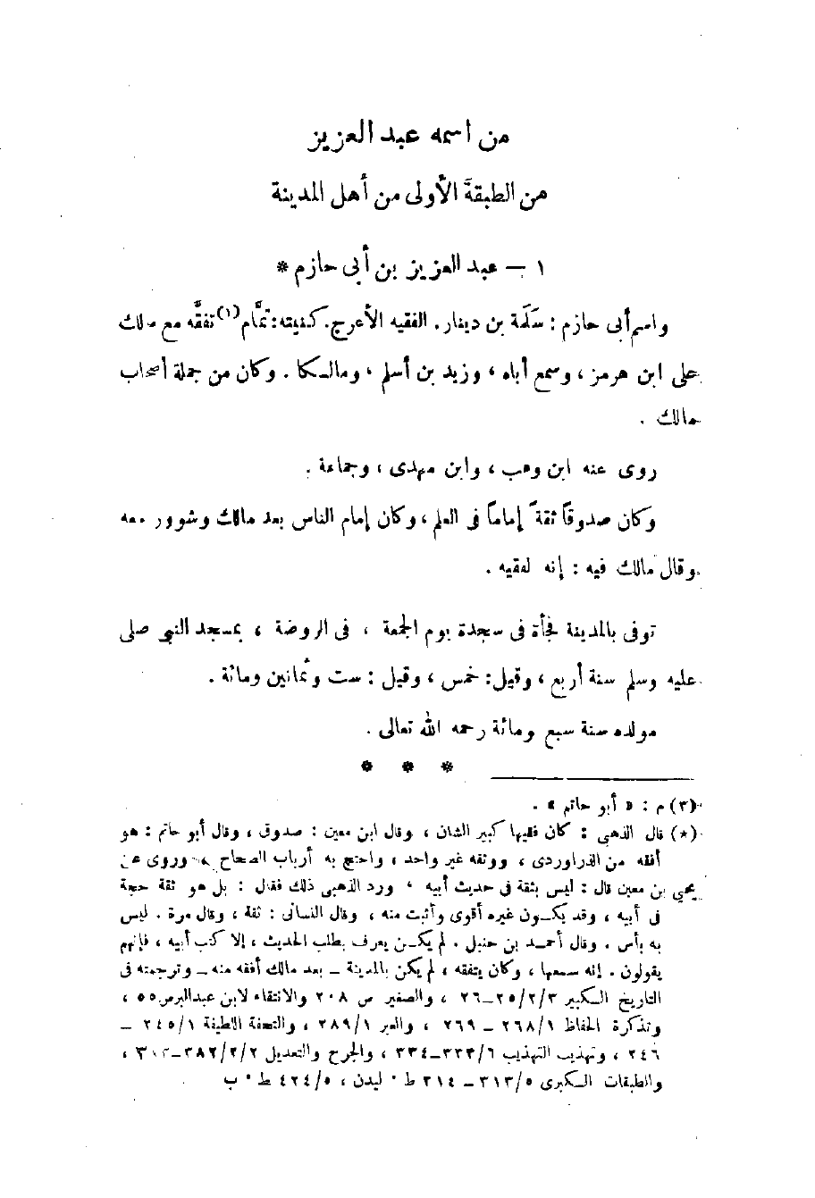 واسم أبي حازم: مسلمة بن دينار الفقيه الأعرج كنيته: أبو تمام تفقه مع مالك علي بن هرمز وسمع أباه وزيد بن أسلم ومالكاً. وكان من جملة أصحاب مالك روى عنه بن وهب وابن مهدي وجماعة وكان صدوقاً ثقة إماماً في العلم وكان إمام الناس بعد مالك وشوور معه وقال مالك فيه: إنه لفقيه. توفي بالمدينة فجأة في سجدة يوم الجمعة في الروضة بمسجد النبي صلى الله عليه وسلم سنة أربع وقيل: خمس وقيل: ست وثمانين ومائة. مولده سنة سبع ومائة رحمه الله تعالى.