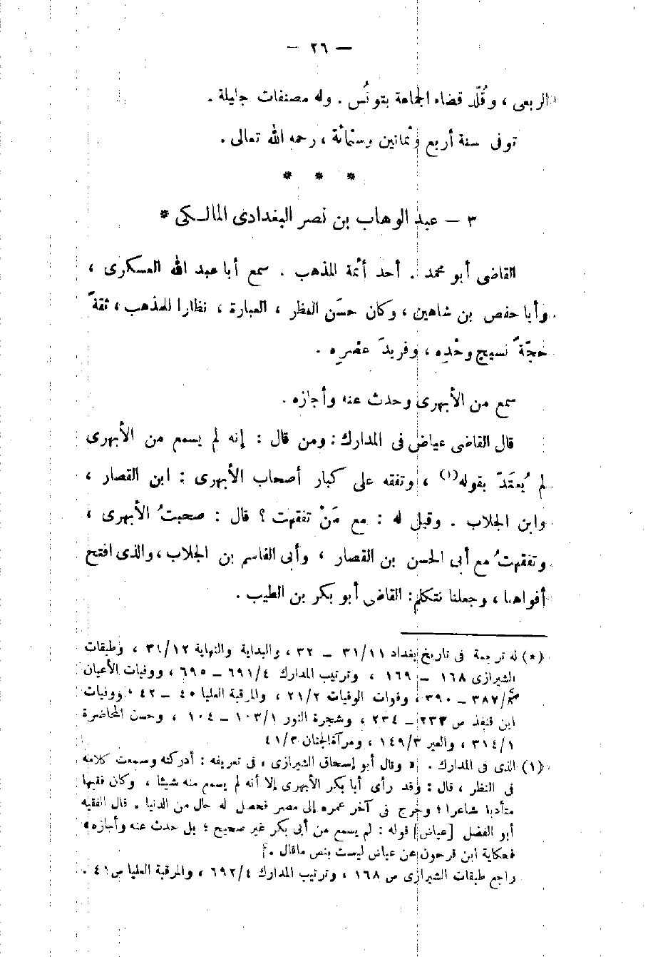 القاضي أبو محمد أحد أئمة المذهب سمع أبا عبد الله العسكري وأبا حفص بن شاهين وكان حسن النظر جيد العبارة نظاراً ناصراً للمذهب ثقة حجة نسيج وحده وفريد عصره سمع من الأبهري وحدث عنه وأجازه.