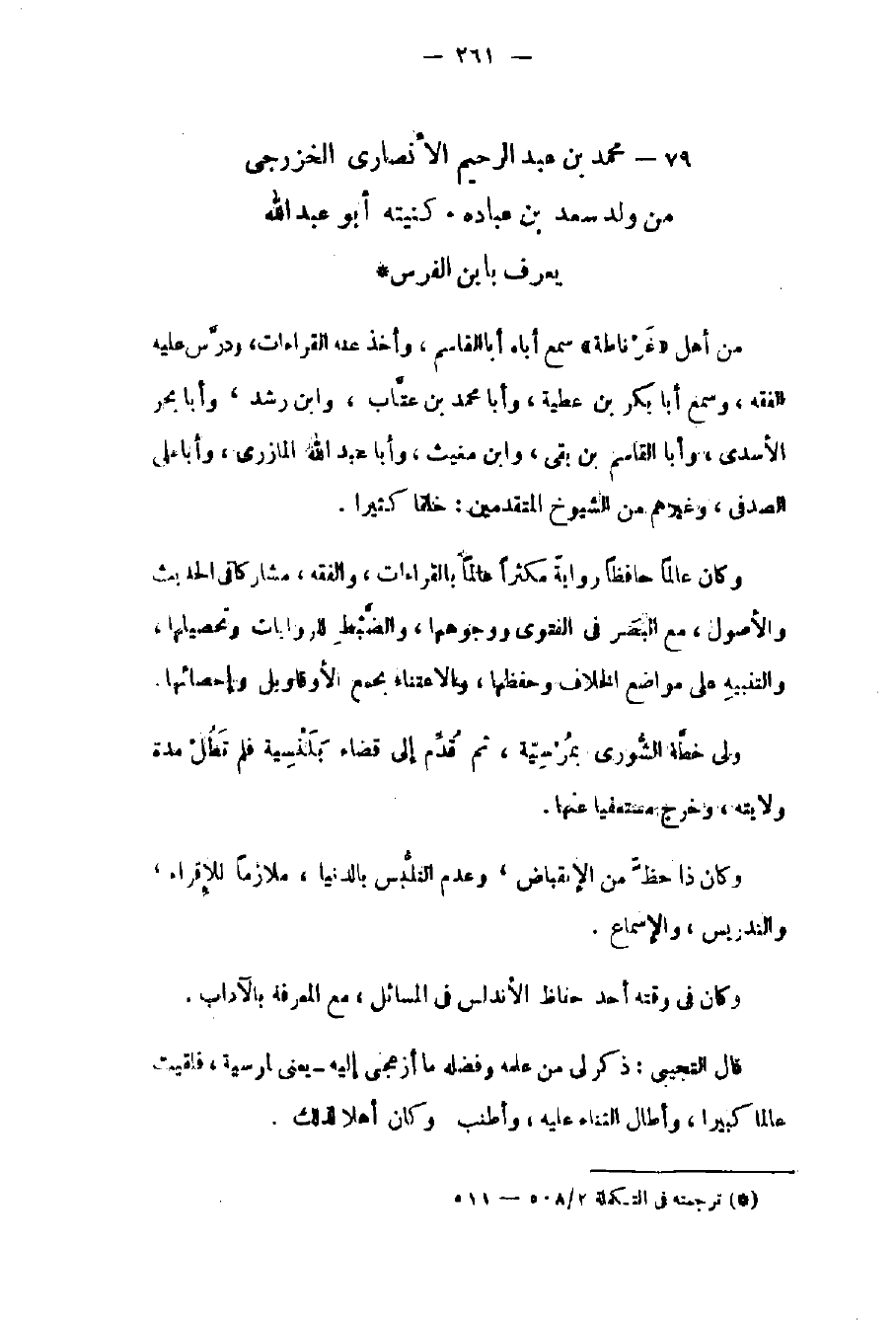 محمد بن عبد الرحيم الأنصاري الخزرجي من ولد سعد بن عبادة. كنيته أبو عبد الله يعرف بابن الفرس