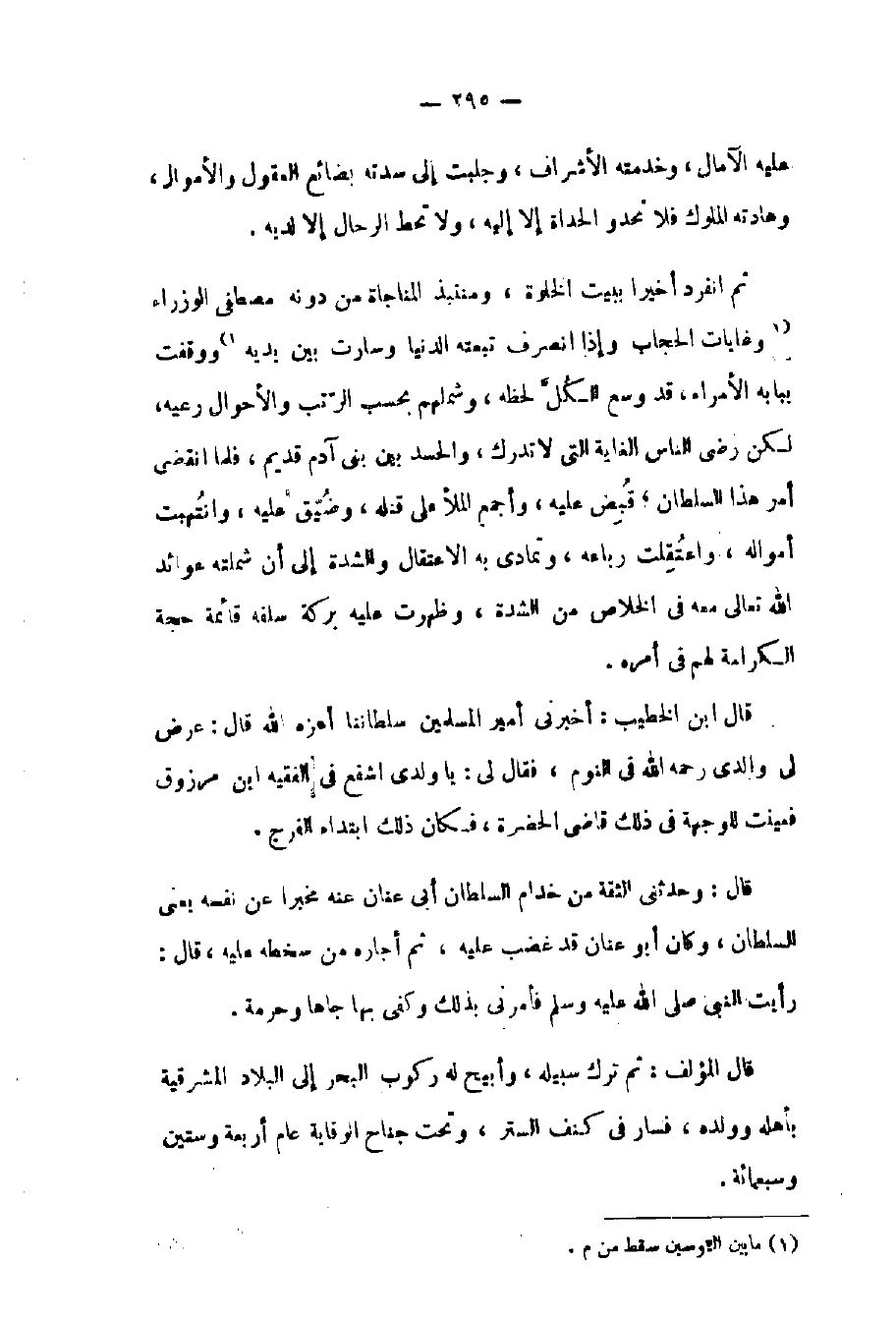 قال المؤلف: ثم ترك سبيله وأبيح له ركوب البحر إلى البلاد المشرقية بأهله وولده فسار في كنف الستر وتحت جناح الوقاية عام أربعة وستين وسبعمائة.