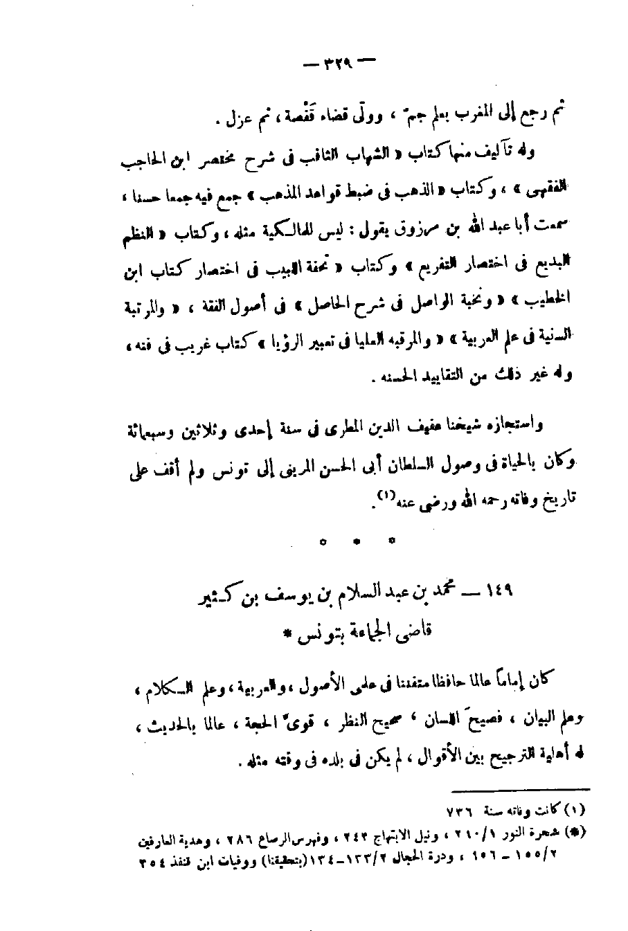 واستجازه شيخنا عفيف الدين المطري في سنة إحدى وثلاثين وسبعمائة وكان بالحياة في وصول السلطان أبي الحسن المريني إلى تونس ولم أقف على تاريخ وفاته رحمه الله ورضي عنه.